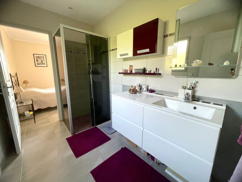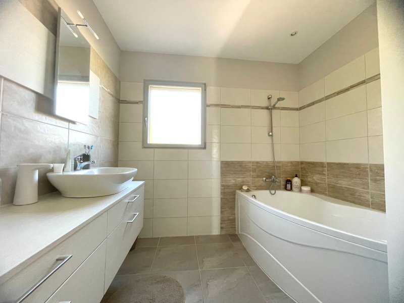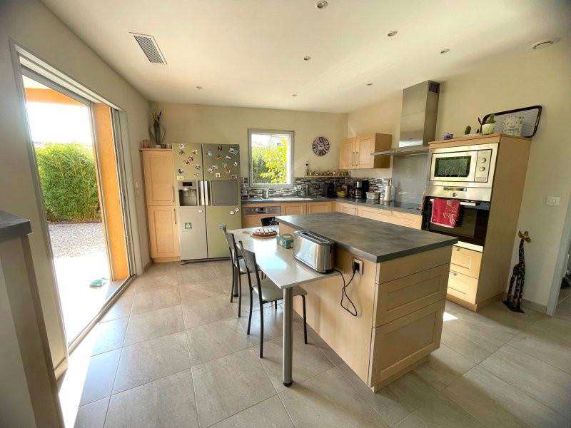 Au calme dans un quartier recherché, laissez-vous séduire par cette très belle villa de 160m2. Edifiée sur un terrain de 1010 m2 et bien entretenue avec terrasses, piscine et jardin paysager. Son rez-de-chaussée se compose d'un salon salle à manger, prolongé par une cuisine ouverte équipée de 51m2. Côté coin nuit, deux grandes chambres de 15m2 chacune, reliées par un dressing et une salle d'eau. Un cellier attenant à la cuisine ainsi qu'un bureau, et un WC complètent ce niveau. A l'étage, vous trouverez deux chambres supplémentaires de 12m2, ainsi qu'une salle de bain et un WC. Un garage ainsi qu'un chalet en bois se rajoutent à l'ensemble pour plus de rangements. Trois places de parking sont présentes sur le terrain, ainsi que deux autres à l'exterieur. Cette somptueuse villa, réalisée avec des matériaux de qualité, est prête a être emmenagée, aucun travaux ne sont à prévoir.