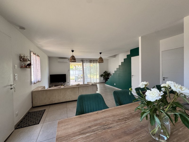 Venez découvrir cette coquette maison de 88 m2 construite en 2023 sur un terrain de 360 m2. Elle se compose au rez de chaussée d'une lumineuse pièce principale avec cuisine américaine, wc et cellier. A l'étage 3 chambres, salle de bains et wc. Piscine hors sol. Jolie terrasse ombragée. 3 places de parking. A voir !