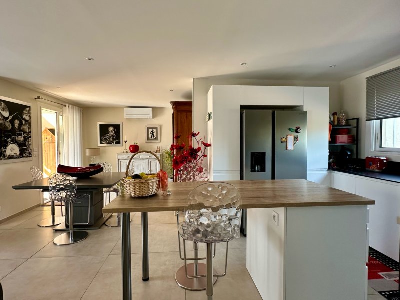 À vendre Maison rénovée haut de gamme à Sainte-Marguerite, La Garde (83130) L'agence Quadrimmo vous présente en exclusivité une magnifique maison entièrement rénovée, située dans le quartier prisé de Sainte-Marguerite à La Garde, à proximité immédiate du Pradet, des plages et de toutes les commodités. Cette villa contemporaine de 150 m2 habitables, dont 107 m2 carrez édifiée sur un terrain paysager de plus de 500 m2, offre un cadre de vie privilégié où confort, modernité et élégance se conjuguent parfaitement. Espace de vie Le séjour traversant exposé plein sud bénéficie d'une luminosité exceptionnelle grâce à ses larges ouvertures donnant sur le jardin. L'ensemble est sublimé par une cuisine ouverte moderne et entièrement équipée, un poêle à bois design, ainsi qu'un système de climatisation réversible pour un confort optimal toute l'année. La pièce de vie s'ouvre sur une grande terrasse et une piscine entourée de verdure, idéale pour profiter d'un cadre paisible et sans vis-à-vis. Agencement intérieur Rez-de-chaussée : Deux belles chambres lumineuses Une salle d'eau contemporaine avec douche à l'italienne et matériaux haut de gamme Une troisième pièce aménagée en dressing et buanderie, pouvant être transformée en bureau Étage : Espace modulable climatisé avec rangements et point d'eau, offrant la possibilité de créer deux chambres supplémentaires, une suite parentale ou un espace de travail Un garage fonctionnel complète ce bien aux prestations soignées. Atouts et prestations Rénovation complète et haut de gamme Climatisation dans toutes les pièces Piscine et terrasse plein sud Environnement calme et résidentiel Aucun travaux à prévoir Proximité immédiate des commerces, écoles et plages Informations complémentaires Bien situé en lotissement (charges ASL : 150 EUR/an) Taxe foncière : 2 650 EUR Prix de vente : 695 000 EUR, honoraires inclus à la charge de l'acquéreur (10 000 EUR) Les risques auxquels ce bien est exposé sont consultables sur le site www.georisques.gouv.fr. Pour tout renseignement ou pour organiser une visite, contactez dès aujourd'hui l'agence Quadrimmo au 04 94 21 03 10.