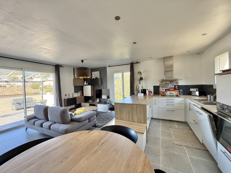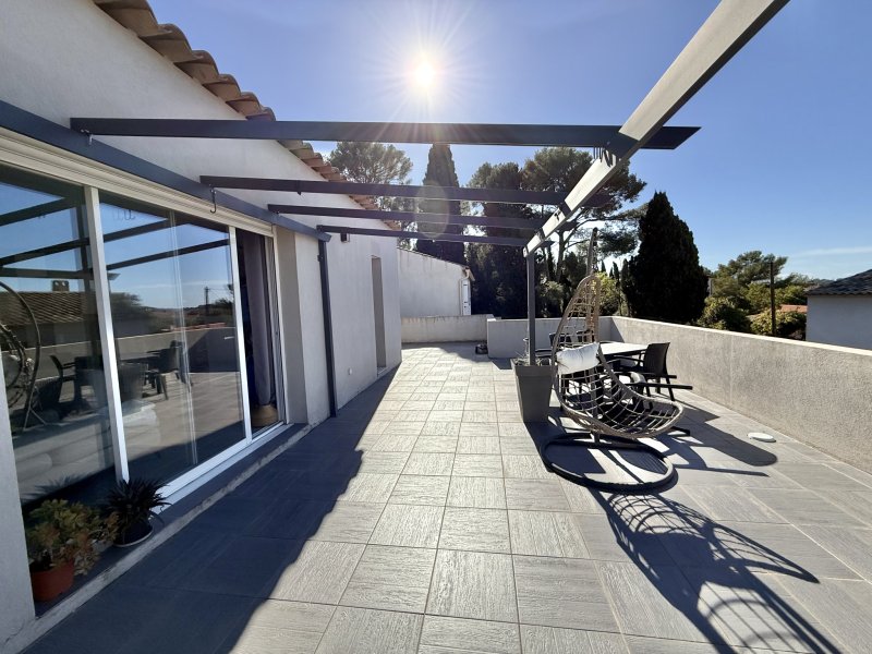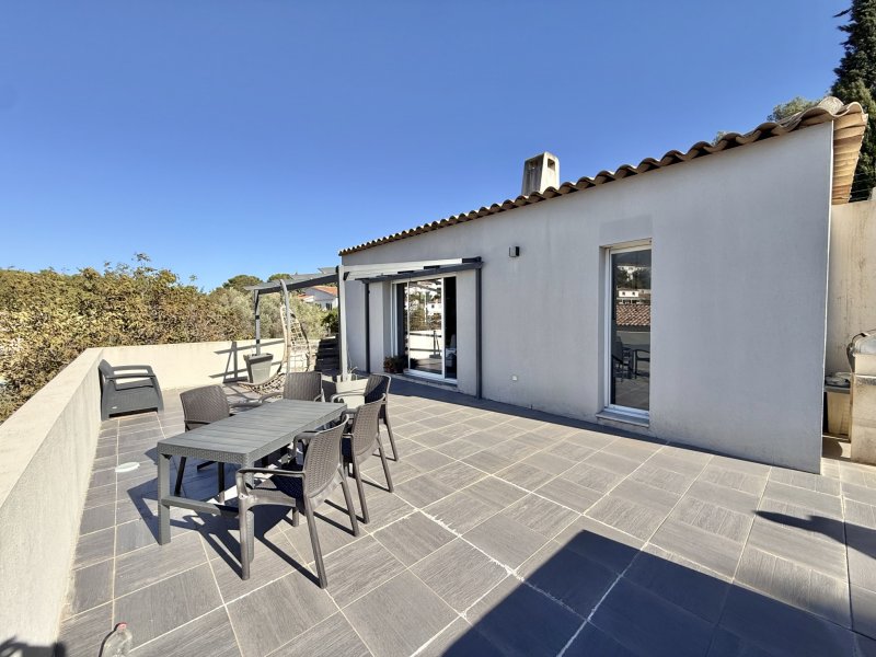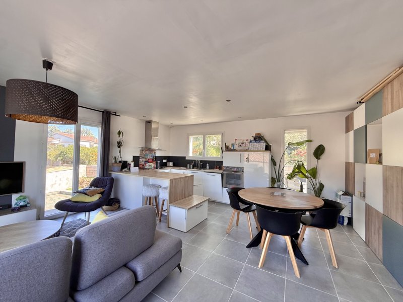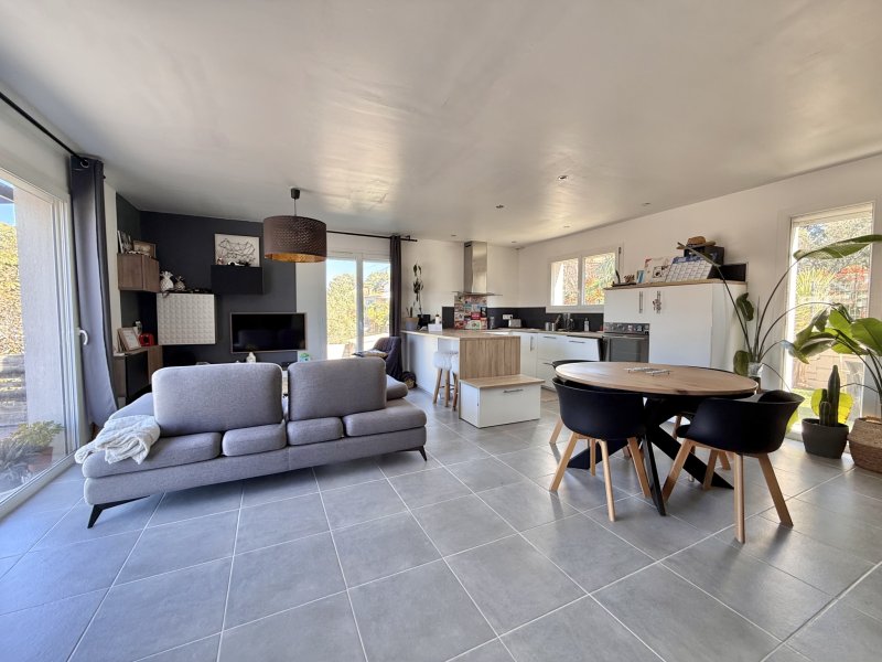 Au calme, villa de type 5 mitoyenne uniquement par le garage bâtie en 2016 sur un terrain de 475 m2 avec très belle piscine traditionnelle carrelée type Bali et boulodrome. La pièce de vie avec cuisine américaine aménagée, très lumineuse avec triple exposition, ouvre sur une belle terrasse avec vue dégagée. Trois chambres dont une suite parentale avec dressing et salle de bains, salle d'eau, 2 WC et une 4e chambre indépendante parfaite pour recevoir. Garage de 23.12 m2 avec espace buanderie.