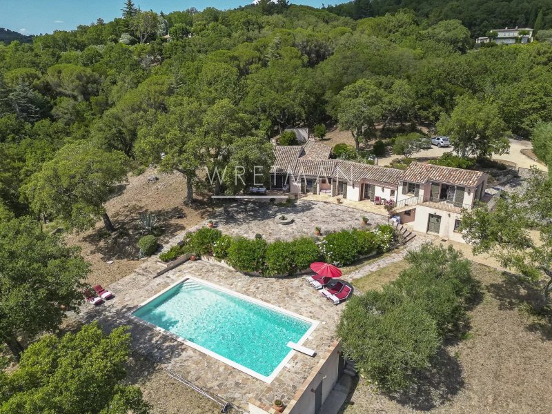 Villa provençale de plain-pied à vendre à environ 4 km du village de La Garde-Freinet, à 20 km au-dessus de Saint Tropez. Endroit calme et isolé avec plus de 2 hectares de terrain et grande piscine.