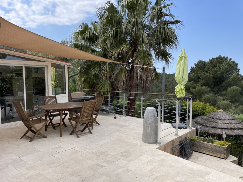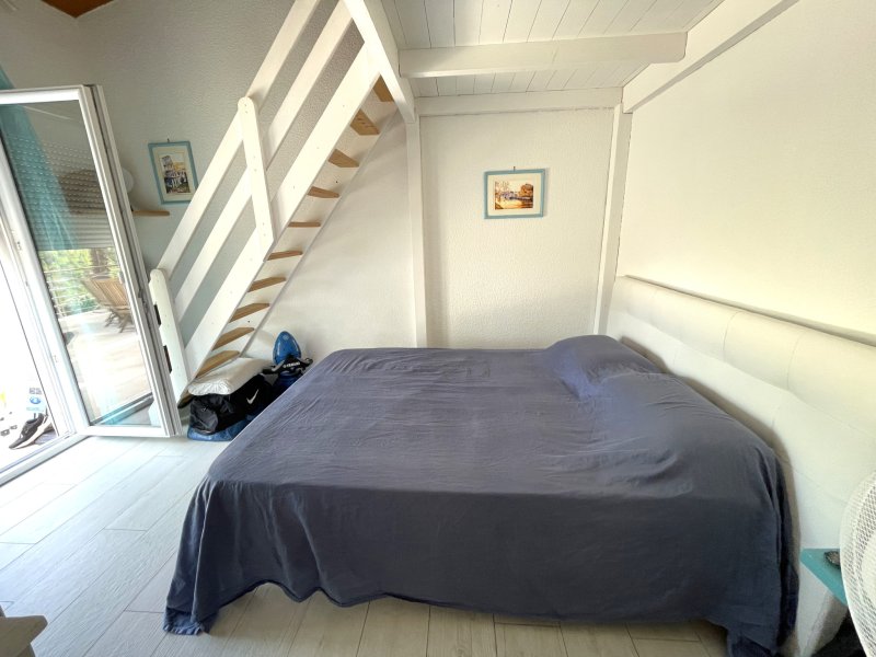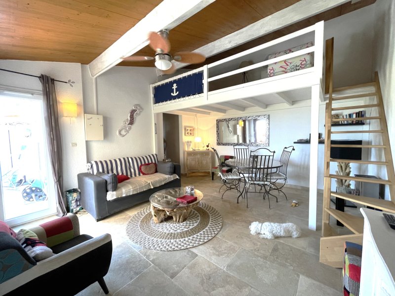 À vendre Domaine de Valcros à La Londe les Maures Maison T 2 + Mezzanines , pleine de charme cachée de tout vis à vis avec son jardin paysager, exposée plein sud - 5 couchages possibles. Située dans un lotissement sécurisé avec piscine, cette maison très coquette a été entièrement repensée pour offrir un cadre de vie chaleureux et fonctionnel. Elle se compose : d'un salon lumineux rehaussé d'une mezzanine pouvant accueillir un couchage pour deux personnes, dans le prolongement du salon une cuisine a été aménagée ouvrant sur la terrasse d'une chambre avec une belle hauteur sous plafond, elle aussi équipée d'une mezzanine de couchage, ainsi que d'une salle de bain récemment rénovée avec WC intégrés. Le jardin, joliment paysagé et aménagé sur deux niveaux, exposée en sud une belle terrasse en travertin puis un coin barbecue en contrebas, parfait pour les moments conviviaux. Un véritable petit cocon, à découvrir Atouts en plus les huisseries ont toutes été changées (double vitrage alu et les volets roulants électriques) Rien à prévoir juste poser ses valises - pour plus d'information ou pour visiter, appelez nous au 06 76 54 04 03 - 06 70 14 34 84