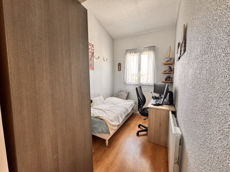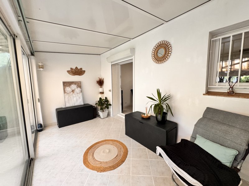 Dans un environnement calme à l'ambiance de vacances, cette maison mitoyenne d'environ 42 m2, complétée par une véranda de 11 m2, est située dans un lotissement résidentiel prisé. Entièrement rénovée et parfaitement entretenue, elle se compose au rez-de-chaussée d'une pièce de vie avec cuisine semi-ouverte, ouvrant sur une agréable véranda elle-même prolongée par un jardinet arboré, intime et sans vis-à-vis. À l'étage, deux chambres offrent un espace nuit fonctionnel, idéal pour une résidence secondaire ou un pied-à-terre au soleil. Une place de stationnement privative située juste devant la maison complète ce bien. L'un de ses principaux atouts reste son emplacement. À seulement 10 minutes en voiture de la plage de l'Argentière, l'une des plus belles plages de la côte varoise, vous profitez également de la proximité immédiate du port Miramar, de ses restaurants, de ses activités nautiques et de ses sentiers en bord de mer. Que ce soit pour y vivre à l'année, s'offrir une résidence de vacances ou réaliser un investissement locatif saisonnier, cette maison représente une opportunité rare et recherchée sur le secteur. Contactez-nous dès maintenant pour organiser une visite.