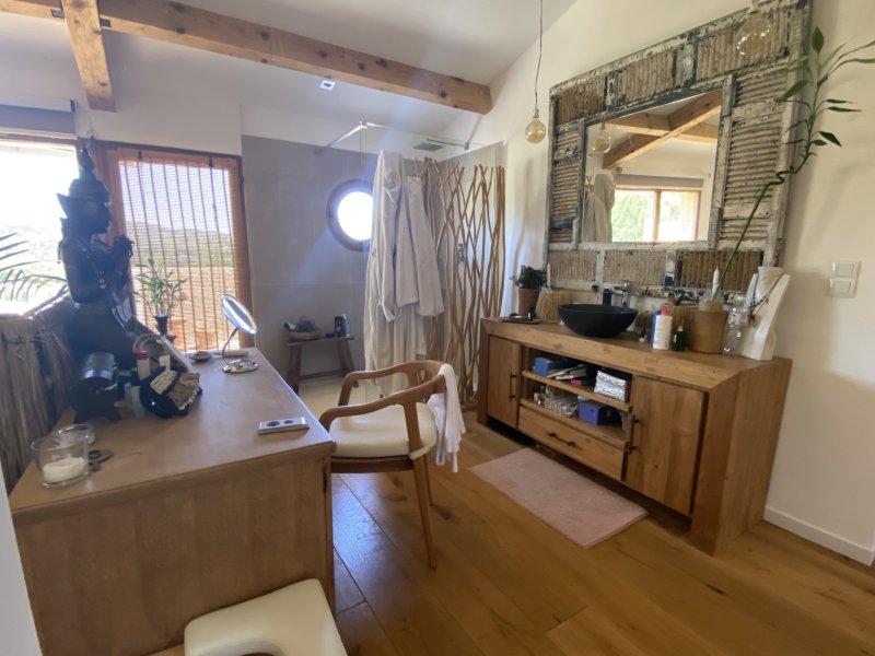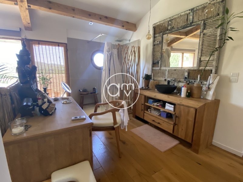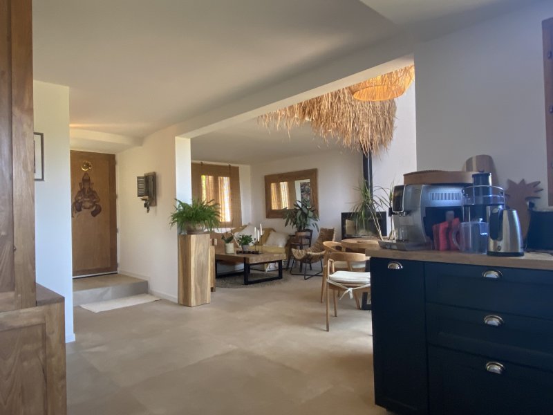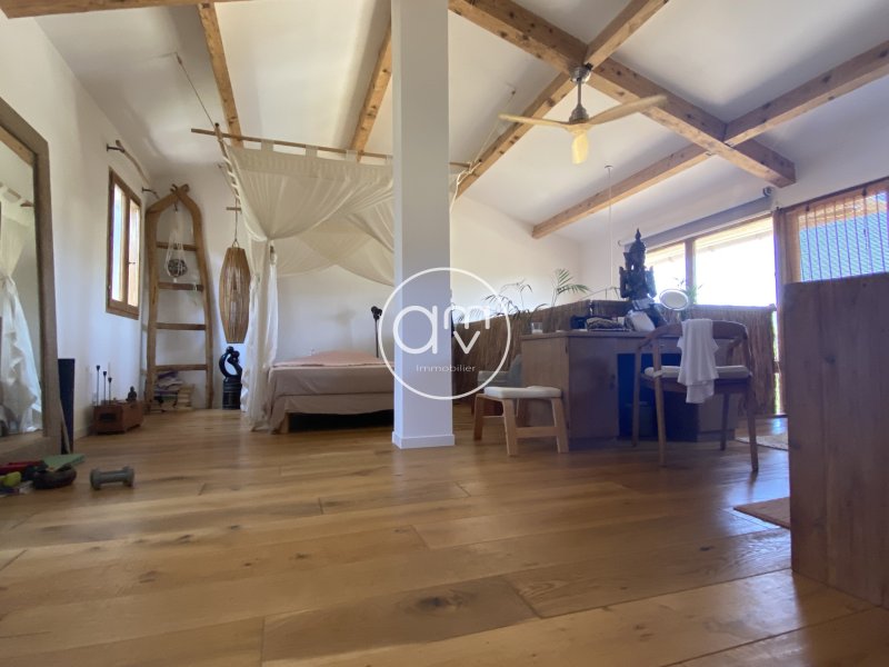 coup de coeur !! pour cette élégante maison de 112 M2 très atypique à la décoration Balinaise !!! (PRESTATIONS SOIGNES!!) Avec Jardin (374 M2) et Jacuzzi - Le Confort rejoint l'élégance !! Cette dernière jouie d'une vue panoramique et imprenable ! Avec des équipements modernes et des espaces bien pensés. piscines et pool-house dans la résidence. Caractéristiques principales : Rez-de-chaussée : Un hall d'entrée accueillant avec un escalier menant à l'étage. Un water-closet indépendant pour plus de commodité. Un séjour lumineux et une cuisine américaine, parfaits pour les moments en famille ou entre amis. Un cellier pratique, offrant un espace de rangement supplémentaire. Une chambre avec salle d'eau et rangement, accessible par deux entrées indépendantes. une 2eme chambre indépendante avec sa salle d'eau et son toilette Une terrasse avec barbecue, idéale pour les repas en plein air et les soirées d'été. Étage : Un pallier menant sur la 3ème chambre spacieuse de27 M2avec sa salle d'eau et son dressing. Un solarium pour profiter du soleil toute l'année. Extérieur : Un jardin bien entretenu avec jacuzzi, offrant un espace de détente et de loisirs en plein air. Cette maison allie confort, praticité et élégance, offrant un cadre de vie agréable et bien pensé. Son emplacement et ses caractéristiques en font un choix idéal pour ceux qui recherchent un espace de vie spacieux et lumineux. Charges mensuelle : 116 EUR