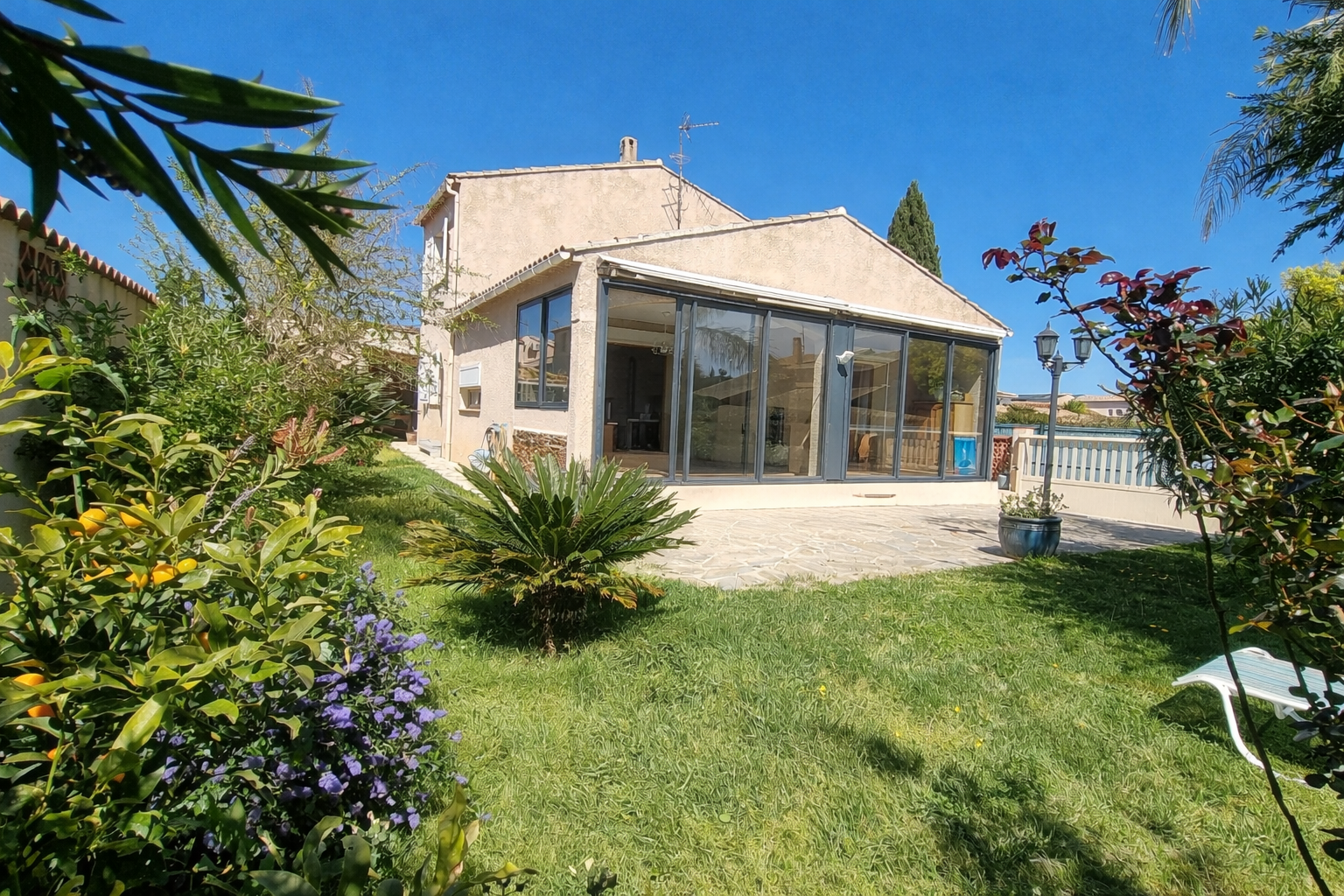 LA LONDE-LES-MAURES, au calme en fond d'impasse, villa T4 d'environ 112m2, élevée d'un étage sur rez-de-chaussée, édifiée sur un terrain d'environ 418m2. Au rez-de-chaussée : Un hall d'entrée dessert un salon/séjour avec une cuisine ouverte aménagée et équipée prolongée par une véranda apportant une belle luminosité à cette pièce de vie confortable. Ce niveau comporte également un WC, un cellier/buanderie avec placard, une chambre avec placard et SDE privative, permettant de gérer un quotidien de plain-pied. A l'étage : Un dégagement dessert 2 chambres avec placard (environ 12m2 chacune), une SDE avec WC. Un garage communiquant avec la maison, carrelé, avec mezzanine et espace buanderie. Côté extérieur, un joli jardin arboré pour se prélasser au soleil, deux places de stationnements sur la propriété, ainsi qu'un atelier dans le prolongement du garage. Formidable atout pour le jardinage : un forage. Ajoutant un fort potentiel de rangement, une cave (environ 35m2) accessible depuis le hall d'entrée. Maison entretenue, climatisation réversible et double vitrage. Secteur calme, proche du centre-ville, commerces, écoles et transport en communs, à 5 minutes de la plage et du port. Les informations sur les risques auxquels est exposé ce bien sont disponibles sur le site Géorisques : www.georisques.gouv.fr