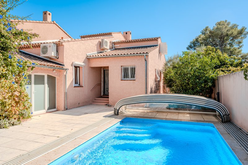 Maison 4 chambres + 1 bureau Piscine Garage Jardin Vie de plain-pied Située dans un quartier recherché à proximité des commodités, cette charmante maison familiale d'environ 106 m2 offre une vie confortable et fonctionnelle avec une vraie vie de plain-pied ! Rez-de-chaussée : Entrée accueillante Spacieux séjour lumineux avec poêle à bois Cuisine indépendante équipée Deux belles chambres (de plus de 13 m2) dont une ouvrant sur terrasse Une salle d'eau moderne WC indépendant À l'étage : Un bureau en mezzanine (fermée), idéal télétravail ou espace détente Deux chambres supplémentaires, dont une ouvrant sur un solarium ensoleillé plein sud avec belle vue dégagée Une seconde salle d'eau avec WC Atouts supplémentaires : Grand garage de plus de 26 m2 2 greniers Piscine chauffée, couverte et équipée de la nage à contre-courant Climatisation réversible Environnement calme, proche commerces, écoles et services Idéal pour une famille ou pour une résidence secondaire à deux pas des plages et des collines varoises. Conformément à l'article L561.5 du code monétaire et financier la présentation d'une pièce d'identité pour organiser une visite est nécessaire. Cette annonce vous est proposée par FAURE Fanny - - NoRSAC: 753871953, Enregistré à Chambre de commerce et de l'industrie de TOULON