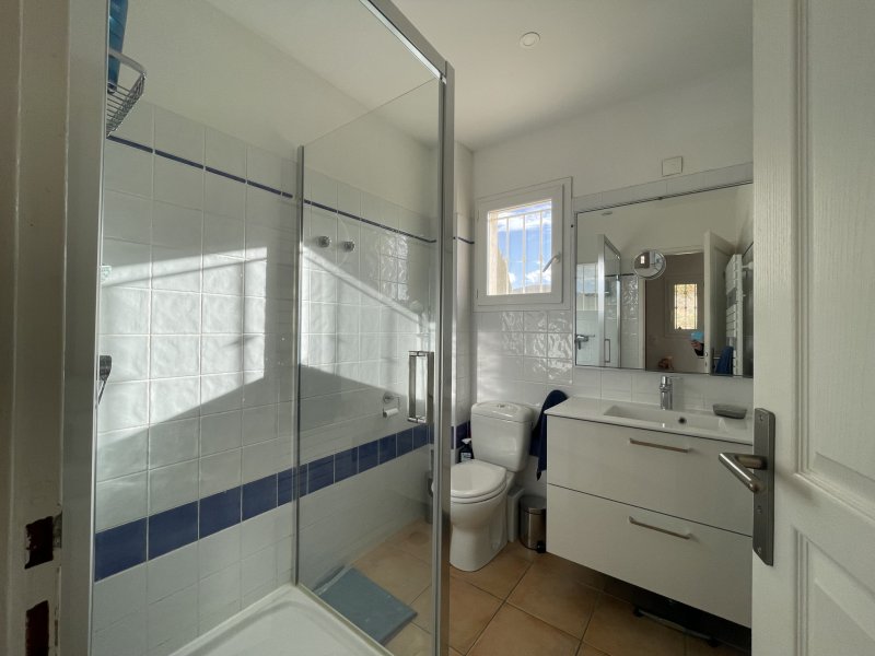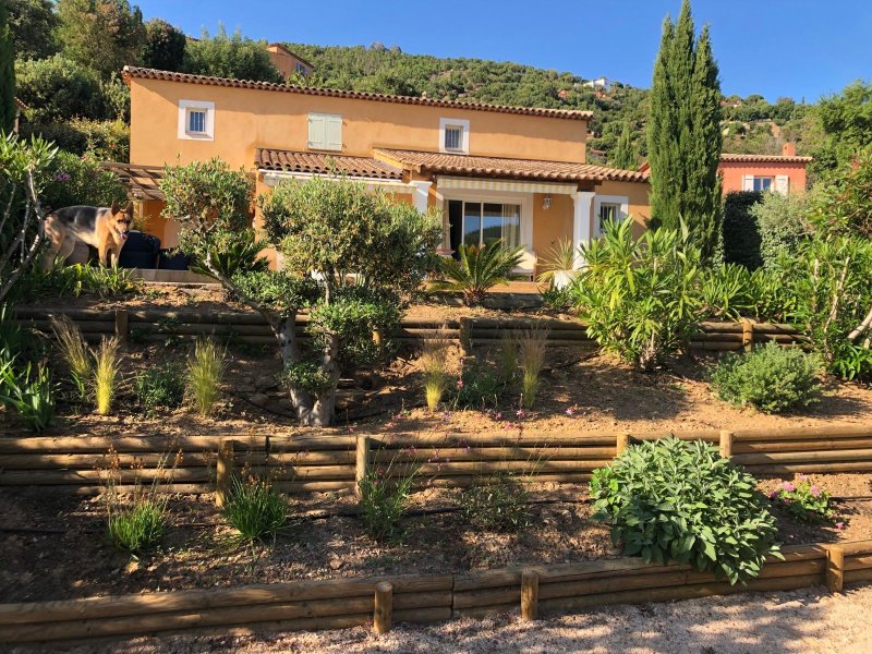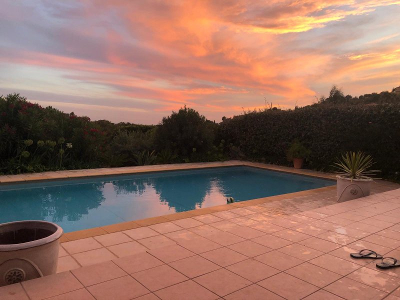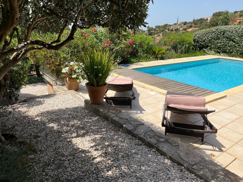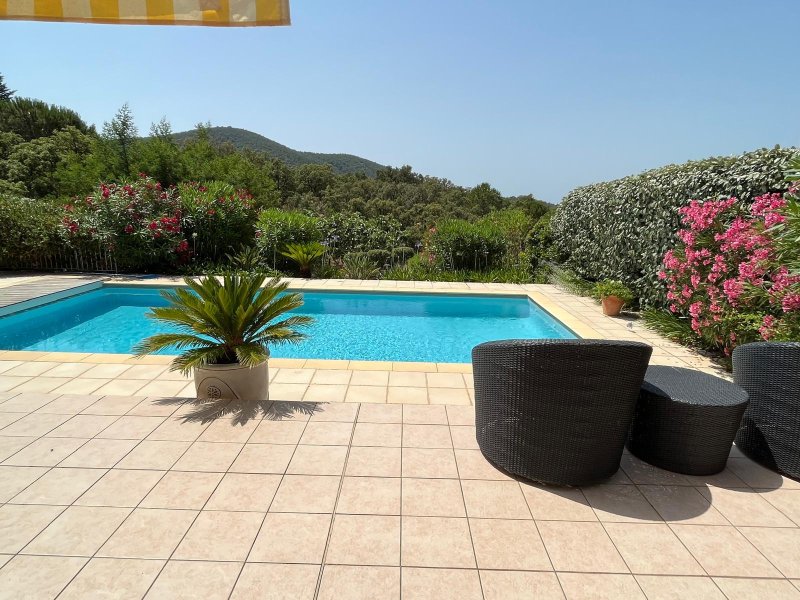 A vendre maison apercue mer 5 pièces avec garage et piscine dans lotissement sécurisé au Domaine de Valcros, La Londe les Maures. Au calme et sans vis à vis, sans aucun travaux à prévoir vous serez séduits par cette charmante maison facile à vivre. On accède à la propriété par l'arrière de la maison où se trouve le garage et une place de stationnement privative. Construite sur un terrain peu pentu entièrement aménagé et paysagé, la villa est composée au rez de chaussée (correspondant à l'étage) et communiquant avec le garage : d'une entrée sur un palier qui dessert deux chambres dont une très spacieuse (avec son grand dressing) et une salle d'eau avec un WC. L'escalier qui descend sur le salon. Au rez de Jardin une grande pièce salon, une salle à manger avec cuisine ouverte équipée et une arrière-cuisine, une suite parentale avec salle de douche et dressing, un WC séparé. L'ensemble ouvrant sur de larges terrasses et la piscine chauffée & couverte. La villa dispose également d'un garage, d'un stationnement privatif, un jardin aménagé et planté en limite d'un espace vert, terrain de pétanque. Aucun travaux à prévoir. Belles prestations. Contactez nous au 06.76.54.04.03 / 06.70.14.34.84