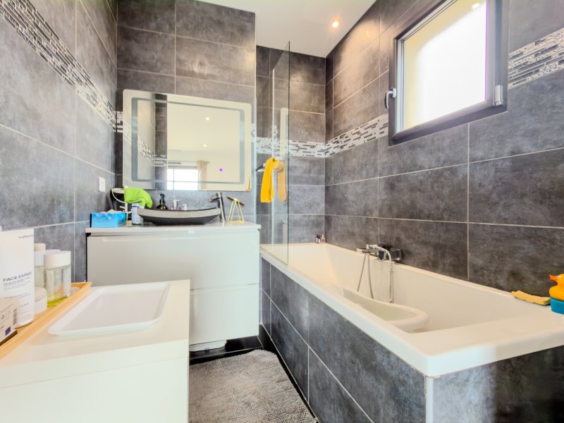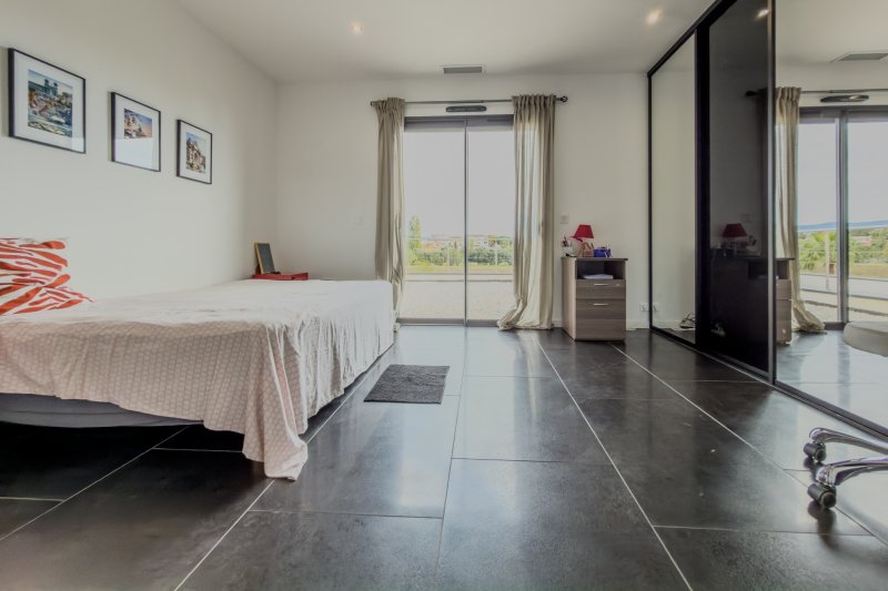 Proche centre, villa contemporaine d'une surface de 183 m2, composée d'une très belle pièce de vie de 85 m2, cuisine aménagée et équipée avec son ilot central, d'une chambre parentale avec son dressing et sa salle de bains pour une superficie totale de 35 m2, wc. L'étage est composé d'une chambre avec sa salle de bains, son dressing et sa vaste terrasse avec vue sur le village et les collines, de deux chambres, d'une salle d'eau et wc indépendants. Le jardin est aménagé et arboré, vous pourrez y profiter de la piscine avec sa plage, terrasse de 70 m2 env. Garage. Prestations de qualité : plancher chauffant et rafraichissant pour le rdc, climatisation réversible gainable à l'étage. Les informations sur les risques auxquels ce bien est exposé sont disponibles sur le site Géorisques : www.georisques.gouv.fr