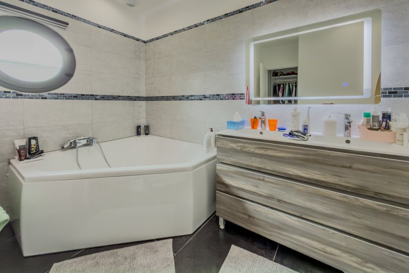 SOUS COMPROMIS DE VENTE. Proche centre, villa contemporaine d'une surface de 183 m2, composée d'une très belle pièce de vie de 85 m2, cuisine aménagée et équipée avec son ilot central, d'une chambre parentale avec son dressing et sa salle de bains pour une superficie totale de 35 m2, wc. L'étage est composé d'une chambre avec sa salle de bains, son dressing et sa vaste terrasse avec vue sur le village et les collines, de deux chambres, d'une salle d'eau et wc indépendants. Le jardin est aménagé et arboré, vous pourrez y profiter de la piscine avec sa plage, terrasse de 70 m2 env. Garage. Prestations de qualité : plancher chauffant et rafraichissant pour le rdc, climatisation réversible gainable à l'étage. Les informations sur les risques auxquels ce bien est exposé sont disponibles sur le site Géorisques : www.georisques.gouv.fr
