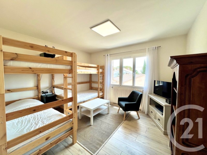 A l'étage, rénové en 2022, la surface est de 97 m2 env. composée d'une entrée, une pièce de vie avec son balcon exposition Sud, cuisine moderne équipée, aménagée et indépendante, 3 chambres, 1 SDB et 1 WC indépendant, dégagements et placards.