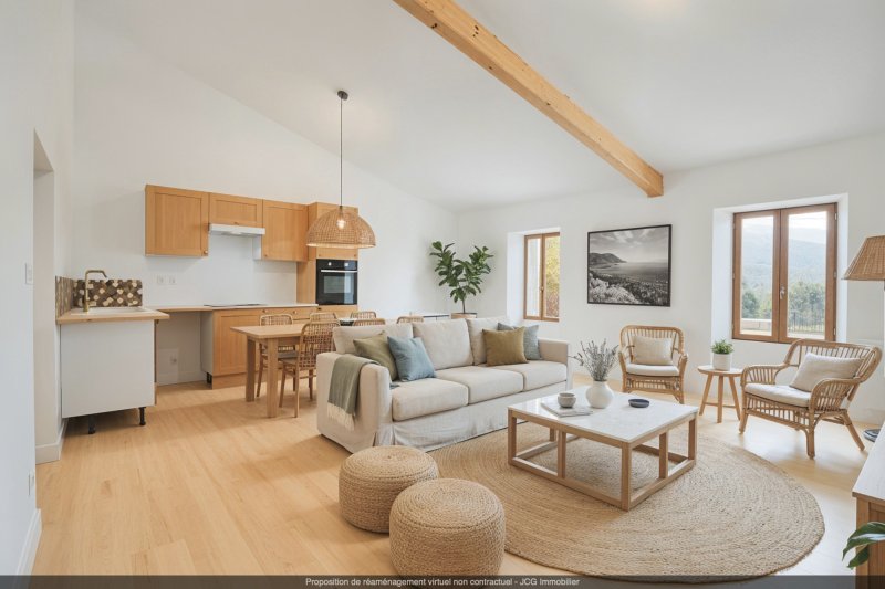 EXCLUSIVITÉ JCG IMMO : au coeur de la campagne, dans un environnement calme et privilégié, retrouvez cette maison à la façade en pierre typiquement provençale. Rénovée en 2025 : plomberie, électricité, isolation, sols, peintures, mode de chauffage, cuisine et salle d'eau. Au rez-de-chaussée : une entrée, permettant l'accès à l'habitation, un T3 d'environ 60 m2 situé au premier étage. Mais également, 60m2 de surface utile, à commencer par un garage de 16 m2, un espace buanderie et deux pièces à destination de remise, possiblement aménageables. À l'étage : une pièce de vie lumineuse exposée plein SUD avec vue dégagée sur les plaines et une hauteur sous plafond remarquable, l'ensemble bénéficiant d'une cuisine ouverte. Puis, un couloir desservant deux chambres, un dégagement avec placard, une salle d'eau contemporaine et un WC indépendant. À l'extérieur : un jardin de 80m2 et de nombreux stationnements. Cette maison mêle le caractère des habitations d'antan dans un secteur rural et le confort d'un bien récent à proximité des commodités. Rare à la vente sur le secteur, visite virtuelle disponible sur demande ! Soyez les premiers à visiter, contactez JCG Immobilier. SCIARRINO Maxime Carte de collaborateur no ADC 8306 2024 000 000 145 Immatriculé au RCS sous le no889 308 425 00012 No de police d'assurance 7953190/S17046246 (SPVIE)