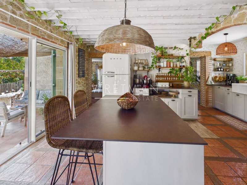 Le cœur de la maison est un vaste espace de vie de 57 m², baigné de lumière naturelle, flanqué d’une cuisine entièrement équipée. Ces deux espaces s’ouvrent en toute fluidité sur de spacieuses terrasses, créant une transition harmonieuse entre l’intérieur et l’extérieur, idéale pour recevoir. Les trois chambres situées au rez-de-chaussée bénéficient également d’un accès direct à la piscine et aux terrasses, renforçant ainsi le lien entre la maison et son environnement extérieur.