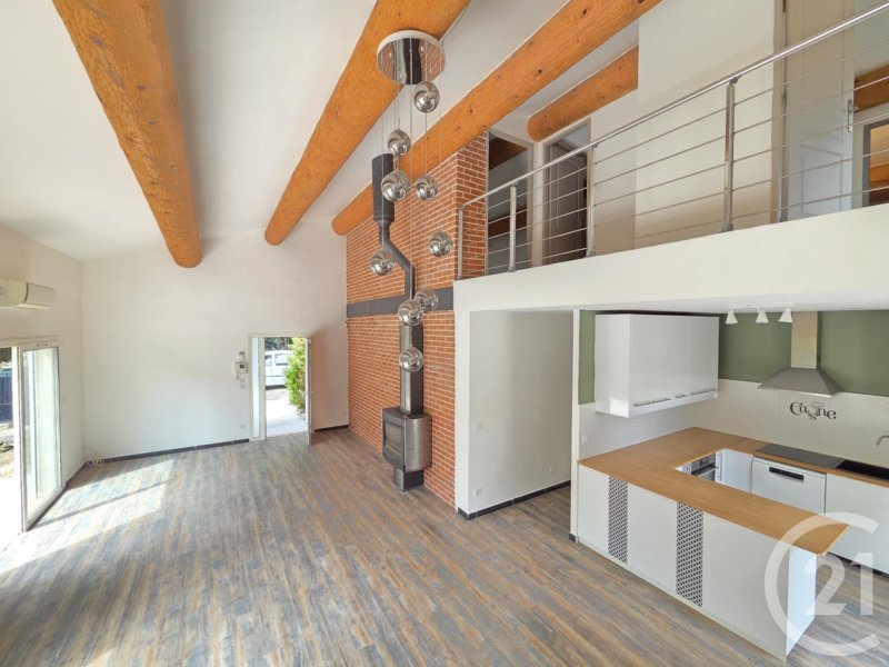 Cette maison de 105 m², construite en 2014, propose une spacieuse pièce de vie climatisée avec un poêle à bois, une cuisine ouverte, deux chambres, un bureau, une salle de bain, une salle d'eau avec toilette et un toilette séparé. Le garage aménagé peut devenir une pièce supplémentaire, tandis qu'une terrasse donne accès à une piscine hors-sol et une dépendance.