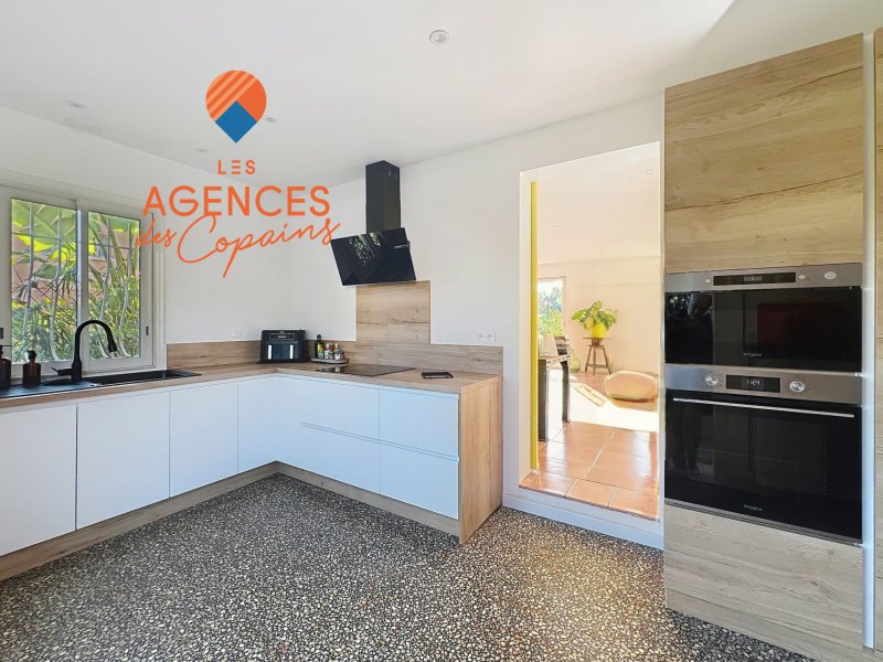 LA SEYNE-SUR-MER, LES PLAINES, VILLA T4 AVEC GARAGE composée d'un grand salon-séjour avec baies à galandage ouvrant sur terrasse et jardin plein sud, cuisine équipée neuve, chambre en rez-de-chaussée avec sa salle d'eau, WC, à l'étage : deux chambres, salle de bains et WC. Travaux récents, poêle à pellets, maison au calme, proche des commerces, plages, écoles et transports. Bien proposé par Thierry ZAGORI Agent Commercial enregistré sous le numéro 952852582 au RSAC de TOULON.