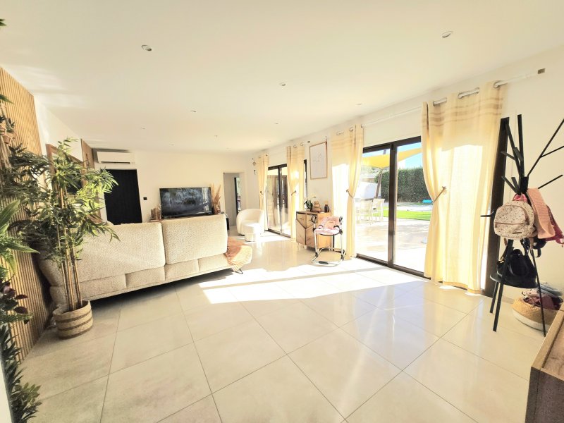LA SEYNE SUR MER - Secteur les Plaines, découvrez cette maison entièrement de plain-pied, implantée sur un terrain plat de 611 m2 exposé plein sud. D'une superficie d'environ 115 m2, elle offre une belle pièce de vie lumineuse et spacieuse , idéale pour les moments en famille ou entre amis. Depuis la pièce de vie, vous profitez d'une vue agréable sur le terrain et la piscine, apportant luminosité et convivialité au quotidien. La cuisine, semi-séparée et entièrement équipée, propose un espace fonctionnel et convivial. L'espace nuit a été pensé pour préserver l'intimité de chacun. La suite parentale avec salle d'eau privative est indépendante et séparée des deux autres chambres. Ces dernières disposent d'une seconde salle d'eau à terminer, tous les branchements et installations étant déjà en place. À l'extérieur, vous profiterez d'un agréable espace aménagé avec terrasses, arbres fruitiers, piscine, un puits, terrain de pétanque et deux abris de jardin. Un autre espace peut être aménagé pour un potager ou un espace de jeux pour enfants. Prestations de qualité : exposition plein sud, double vitrage, climatisation dans chaque pièce, matériaux soignés, aucun travaux à prévoir et trois places de stationnement. arrosage automatique avec le puits À proximité des écoles, commerces et plages, cette maison allie confort, fonctionnalité et emplacement privilégié. Une opportunité très rare sur le secteur, à visiter sans tarder.