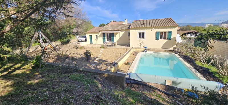 La seyne sur mer, quartier des playes , dans un lotissement calme, belle maison de plain-pied de construction récente ( 2012) sur parcelle de 914 m2 de terrain plat avec piscine (traitement au sel). La maison, d'une surface de 94 m2 environ est composée de 3 trois chambres dont une suite parentale avec cabine de douche. Vous trouverez également une salle de bain et un wc indépendants. La cuisine est séparée, la pièce de vie est traversante et lumineuse, acces direct au jardin. Un garage est attenant à la maison , il est possible de garer plusieurs véhicules sur la parcelle. Double vitrage, de la climation réversible.