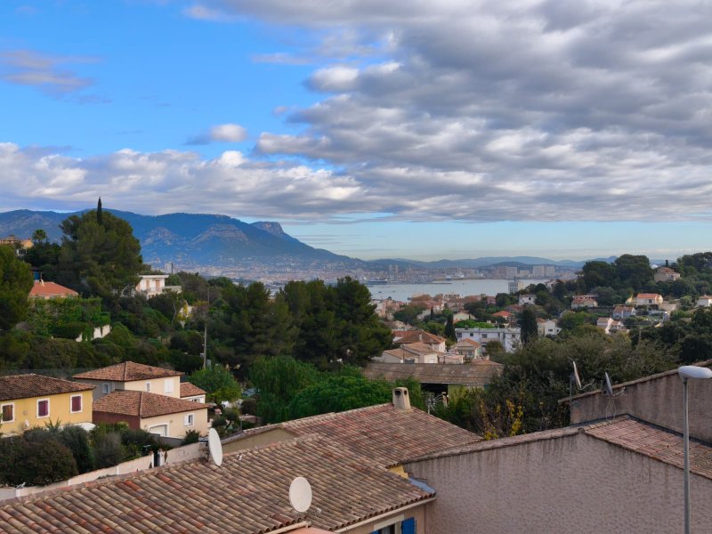 LA SEYNE SUR MER LIMITE SIX FOURS LES PLAGES - SECTEUR BARBAN. Au calme, villa non mitoyenne de type T5 de 95m2 habitables. Elle se compose d'un hall d'entrée, d'un salon/séjour ouvrant sur une terrasse bénéficiant d'une jolie vue sur le rade de Toulon, d'un coin cuisine, d'une chambre de plain-pied, d'une salle d'eau, wc séparés. A l'étage, trois chambres, une salle d'eau avec wc. Menuiseries double vitrage + volets neufs. Buanderie de 20m2. Garage avec porte neuve de 20m2. Parcelle de 423m2. Contacter JULIEN ESNAULT 07.85.87.44.23