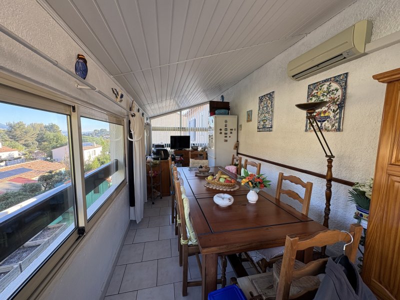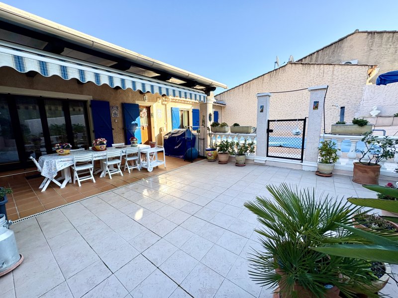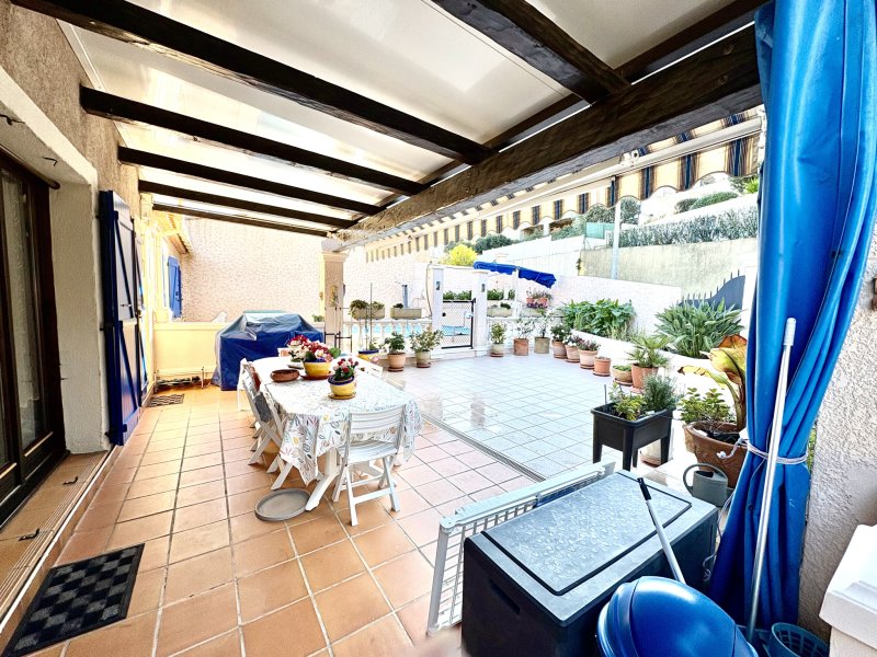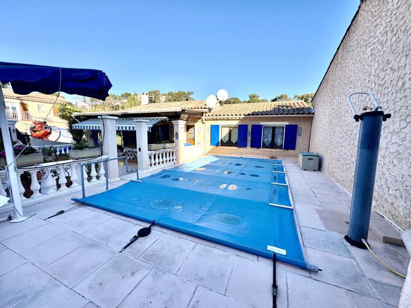La Seyne sur mer , quartier residentiel dans un lotissement au calme jolie maison de 90m2 de plain pied+Appartement de type 2 de 35 m2+Garage de 45 m2 La maison principale de PLAIN PIED est composée d' une belle pièce de vie salon et séjour de 37 m2 donnant sur l'exterieur ,une cuisine équipée donnant sur une loggia, 3 chambres , salle d'eau avec fenêtre et wc séparé. Un garage et un T2 indépendant Jardin -Piscine 6x3 au sel- A VISITER... contact : zero six, vingt deux, trente neuf, vingt et un , quatre vingt neuf