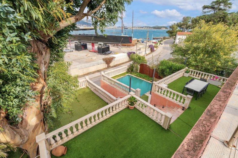La Seyne, Corniche de Balaguier, venez visiter cette atypique maison de type 5 offrant, en plus de sa situation exceptionnelle, un espace séjour - salle à mager de plus de 50m2, une belle cuisine séparée et aménagée, 3 chambres dont une avec sa salle d'eau, un salle de bains hors normes, 2wc. Le terrain se décompose en plusieurs réstanques avec une piscine et 2 annexes aménageables. Plusieurs terrasses, dont une sur le toit dominant ainsi toute la rade. Elément indispensable : un garage !
