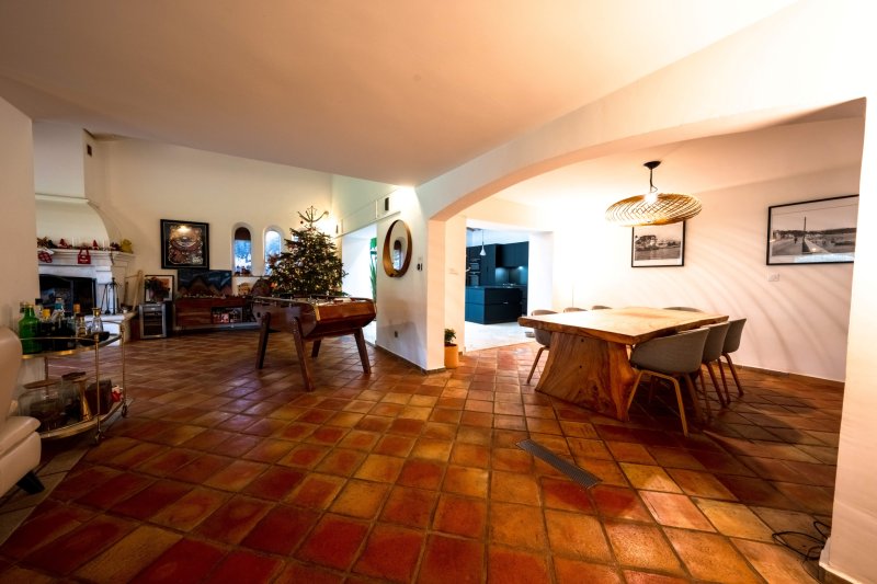 LA SEYNE-SUR-MER, JANAS, SUPERBE VILLA D' ARCHITECTE DE 256 m2 SUR TERRAIN ARBORE DE 3080 m2 Au calme, villa T7 signée Maurice SAUZET avec pierres apparentes, grande terrasse couverte avec puits de lumière, salon de 55 m2 avec grandes baies vitrées, cheminée et poutres apparentes, cuisine de 31 m2, salle à manger, 3 chambres de plain-pied, 2 salles d'eau, 2 WC, à l'étage une suite parentale avec salle d'eau et WC, coin bureau en mezzanine et deuxième chambre. Au sous-sol : buanderie et celliers, grande salle de jeux et garage double. Piscine chauffée avec pool house et cuisine d'été dans un parc arboré avec abris voitures et atelier. Bien rare avec beaucoup de cachet. Proposé par Thierry ZAGORI, Agent commercial enregistré sous le no950852582 au RSAC de TOULON.