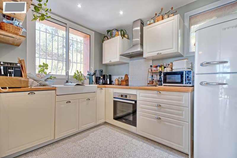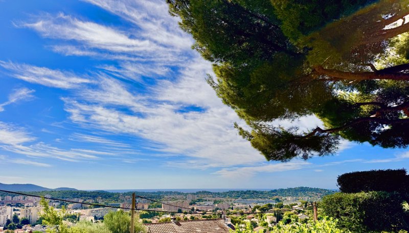 TOULON EST - LIMITROPHE LA VALETTE - Nichée dans l'un des quartiers les plus prisés de Toulon, à la lisière de La Valette, cette villa remarquable allie avec brio le charme des années 50 et le confort contemporain, au coeur d'un écrin de verdure baigné de lumière. Entièrement rénovée avec goût, elle se compose d'une vaste pièce de vie lumineuse sublimée par une cuisine séparée par une verrière, entièrement équipée, le tout ouvert sur l'espace extérieur agrémenté de plusieurs terrasses, permettant d'en profiter tout au long de la journée. Le coin nuit dessert deux chambres avec rangements, une salle d'eau moderne, ainsi qu'un WC séparé avec lave-mains et rangements. Le tout est édifié sur un terrain de 800 m2 joliment arboré en restanques, offrant une vue dégagée jusqu'à la mer. Une buanderie extérieure, un terrain de boules, un espace barbecue ainsi qu'un garage de 20 m2 viennent compléter cette villa au charme et à l'atmosphère intemporels. Enfin, sa situation en fond d'impasse garantit un calme absolu, tout en restant à moins de 3 minutes des commerces de La Valette et des écoles.