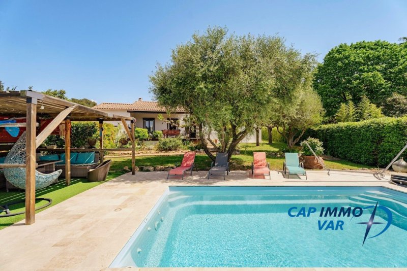 Découvrez cette magnifique maison plain-pied de 120 m² habitables, nichée sur un terrain de 1200 m², offrant un cadre de vie paisible et ensoleillé. Construite en 1983 et rénovée en 2018, cette propriété allie le charme d'antan avec les commodités modernes. Imaginez-vous dans un spacieux séjour de 40 m², baigné de lumière naturelle, ouvrant sur une terrasse ensoleillée. La cuisine américaine aménagée et équipée est un véritable espace convivial pour les repas en famille ou entre amis. Avec 4 chambres confortables, une salle de bains et une salle d'eau, cette maison est idéale pour une famille ou pour recevoir des invités. Profitez de l'été autour de la piscine de type coque, parfaite pour se rafraîchir et se détendre. Le terrain est entièrement piscinable, offrant de nombreuses possibilités d'aménagement selon vos envies. La maison est bien isolée avec une toiture en bon état et des doubles vitrages, garantissant un confort thermique optimal. Le chauffage individuel assure une température agréable en toute saison. Les ouvertures en PVC et les portes à double vitrage ajoutent une touche de modernité et d'efficacité énergétique. Située dans un environnement calme avec une vue imprenable sur la campagne, cette maison est exposée à l'ouest, profitant des couchers de soleil magnifiques. Les commodités sont à proximité : plusieurs écoles maternelles et élémentaires, un collège, des restaurants, des commerces d'alimentation générale, un parc et un jardin, ainsi que des médecins généralistes sont accessibles en quelques minutes en voiture. Les hôpitaux sont également facilement accessibles. Ne manquez pas cette opportunité de vivre dans une maison spacieuse et lumineuse, entourée de nature et proche de toutes les commodités. Contactez-nous dès maintenant pour organiser une visite et laissez-vous séduire par ce havre de paix. Honoraires à la charge du vendeur. Classe énergie C, Classe climat A Montant moyen estimé des dépenses annuelles d'énergie pour un usage standard, établi à partir des prix de l'énergie de l'année 2021 : entre 1340.00 et 1840.00 . Les informations sur les risques auxquels ce bien est exposé sont disponibles sur le site Géorisques : georisques.gouv.fr. Votre conseiller Cap Immo Var : Béatrice GAUTERO Agent commercial (Entreprise individuelle) RSAC 834223778 RCP Galian-Smabtp