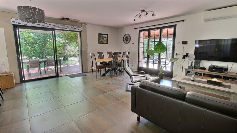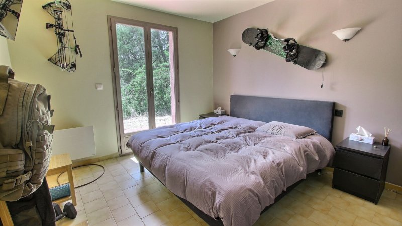 À l'extérieur, le terrain plat et arboré de 6 457 m² est un véritable atout : jardin, potager, aire de jeux, extension, piscine, espace pour animaux... Les possibilités sont nombreuses pour créer votre cocon familial, au coeur de la campagne provençale.