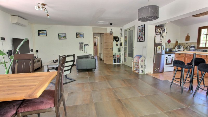 Située à seulement 5 minutes des commodités et de l'autoroute, cette villa de 98m² offre une belle base à réinventer selon vos goûts. La pièce de vie lumineuse avec cuisine ouverte crée un espace chaleureux et convivial, idéal pour les moments en famille. Trois chambres viennent compléter l'espace nuit.