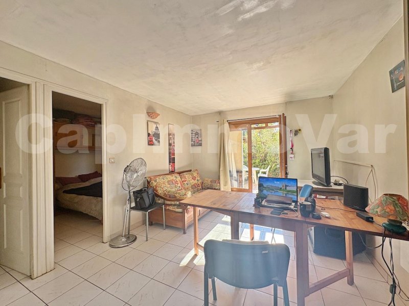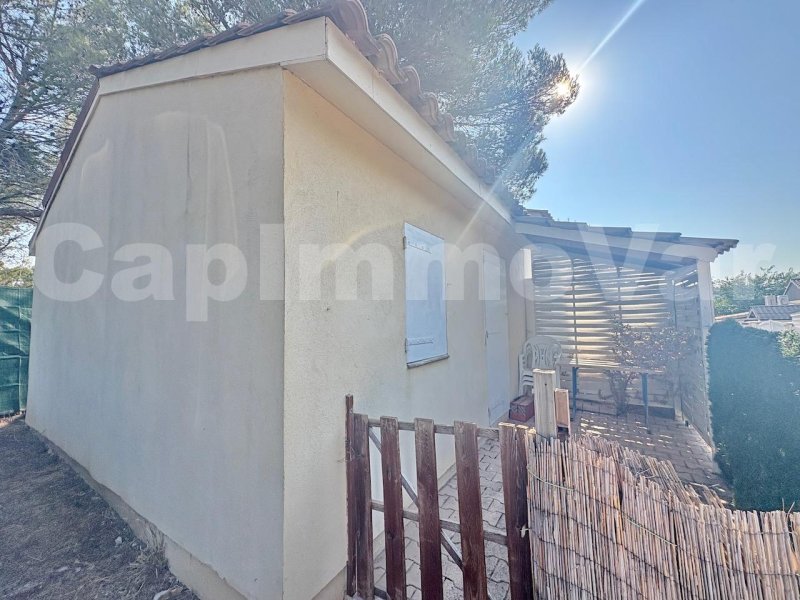 LE CAMP DU CASTELLET - Le chalet situé au sein de la résidence de loisirs Eden Park au Camp du Castellet, avec piscine collective, bénéficie d'un emplacement privilégié sur une parcelle cadastrée d'environ 204 m². Actuellement divisé en deux logements indépendants, il offre une configuration idéale pour accueillir deux familles, proposer de la location saisonnière ou envisager une réunion en une seule habitation. La superficie totale est de 54,16 m².  Le premier logement comprend un séjour/cuisine, une chambre, un bureau, une salle d'eau, un débarras et une terrasse. Le second logement dispose d'un séjour/cuisine, d'une chambre, d'une salle d'eau et d'une terrasse. Deux places de stationnement complètent le bien.