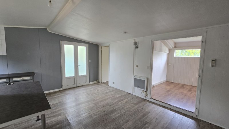 La maison se compose d'une salle-à -manger, d'un beau séjour-salon donnant sur jardin, d'une cuisine aménagée, d'une salle d'eau, d'un wc, de deux chambres plus un bureau.