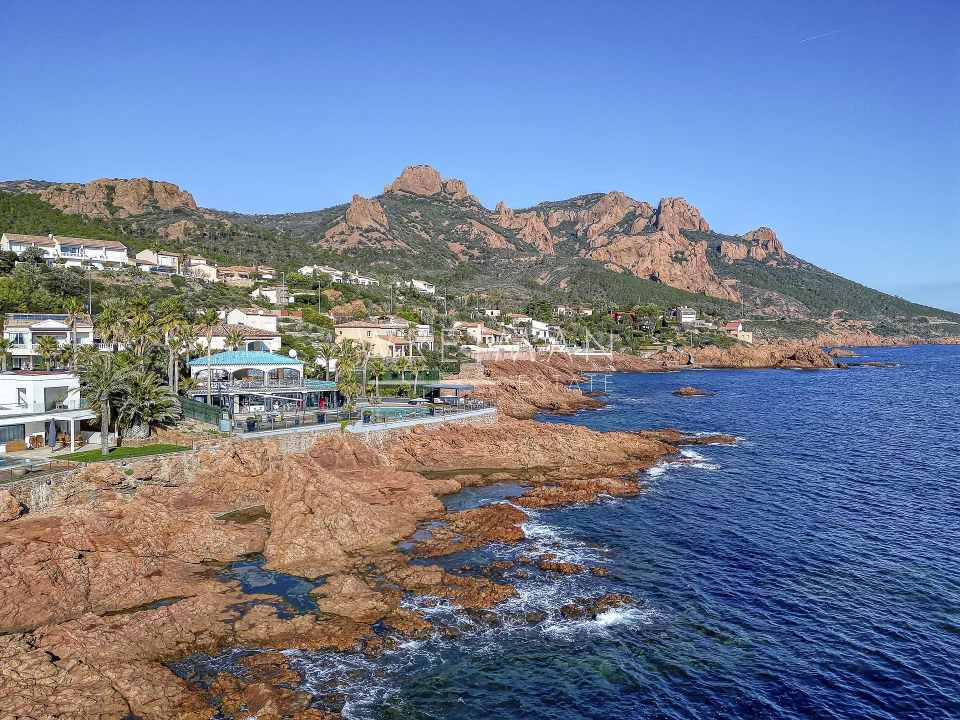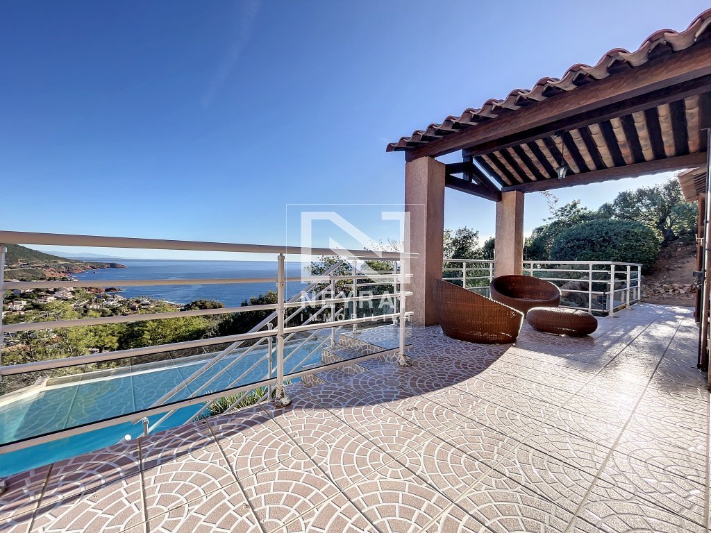 Idéalement située à quelques minutes des plages et des commerces, dans un agréable domaine, villa de 170 m2 environ offrant une vue imprenable sur la avec vue imprenable sur la baie d'Agay ! Elle se compose au rez-de-chaussée : d'un séjour ouvrant sur une grande terrasse exposée sud et une magnifique vue mer, une cuisine indépendante, 1 chambre, une salle d'eau, wc, un bureau. À l'étage : trois belles chambres ainsi que deux salles de bains avec wc. Un espace jacuzzi complète le tout Édifiée sur un terrain de 1350 m2 il vous sera possible de bénéficier de 4 emplacements de stationnement. A VISITER SANS TARDER ! POUR PLUS D'INFORMATIONS contactez notre agence au 04.83.12.04.40 Les informations sur les risques auxquels ce bien est exposé sont disponibles sur le site Géorisques : www.georisques.gouv.fr GMJ Immobilier : A vos côtés depuis 60 ans