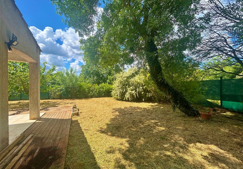 Le terrain, plat et clos sur trois côtés, permet de profiter pleinement de l'extérieur, avec une belle vue dégagée.