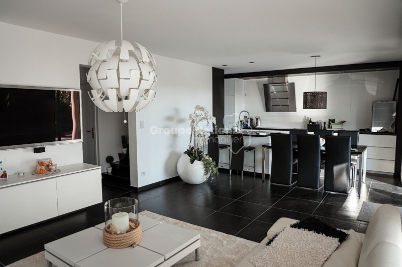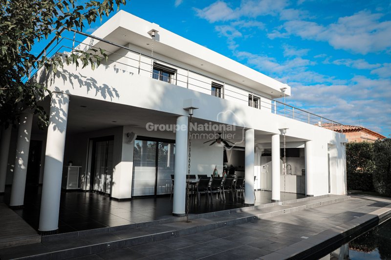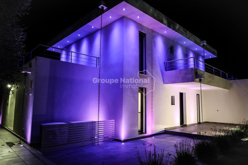 Au Luc en Provence, Concerto Immobilier vous propose cette villa contemporaine de 2013 situé en périphérie de la ville. D'une superficie habitable de 110.70m² sur un terrain de 1250 m² cette villa est composée d'un salon fait de baies vitrées, d'une cuisine moderne aménagée et équipée et d'un WC au rez-de-chaussée. A l'étage vous trouverez trois chambres, un WC et une salle d'eau. Chaque chambre profite d'un accès au toit terrasse avec un vue dégagée sur les maures.