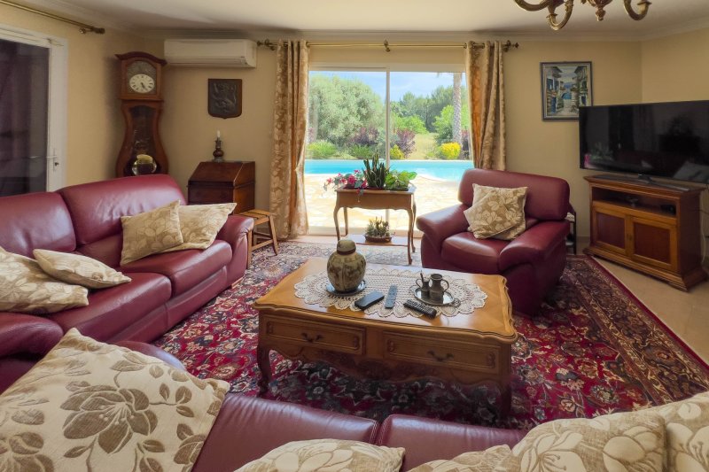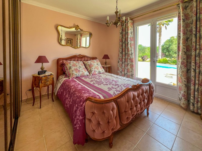 Proche des commodités au calme et vue sur la campagne, villa de plain-pied au Luc de 147 m2 comprenant un vaste séjour avec cheminée (45 m2), un coin bureau, une cuisine aménagée et équipée de qualité (12 m2), trois chambres dont deux avec dressing, salle de bains de qualité + douche à l'italienne, une grande pièce pouvant être au choix une chambre supplémentaire ou un grand espace atelier. Piscine, carport, chalet de jardin, garage de 25,60 m2, terrain de 1352 m2 arboré aux essences variées. L'ensemble est orienté au Sud. Les prestations haut de gamme offrent climatisation réversible, volets électriques, matériaux et équipements de qualité. Les informations sur les risques auxquels ce bien est exposé sont disponibles sur le site Géorisques : www.georisques.gouv.fr