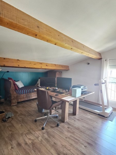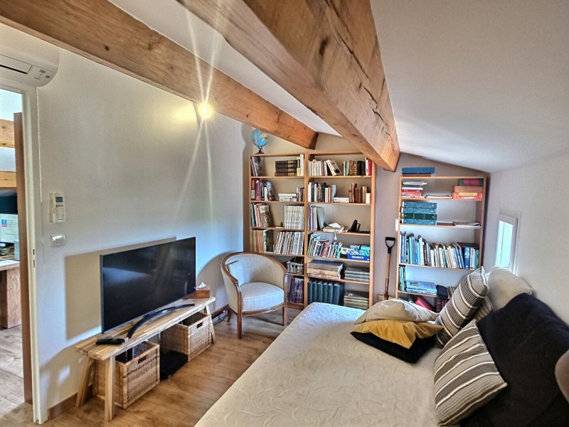 À l'étage, deux pièces supplémentaires, l'une vaste et l'autre plus intime, exposées est et sud, pouvant accueillir, selon vos besoins : chambres, bureau, salle de jeux, etc.