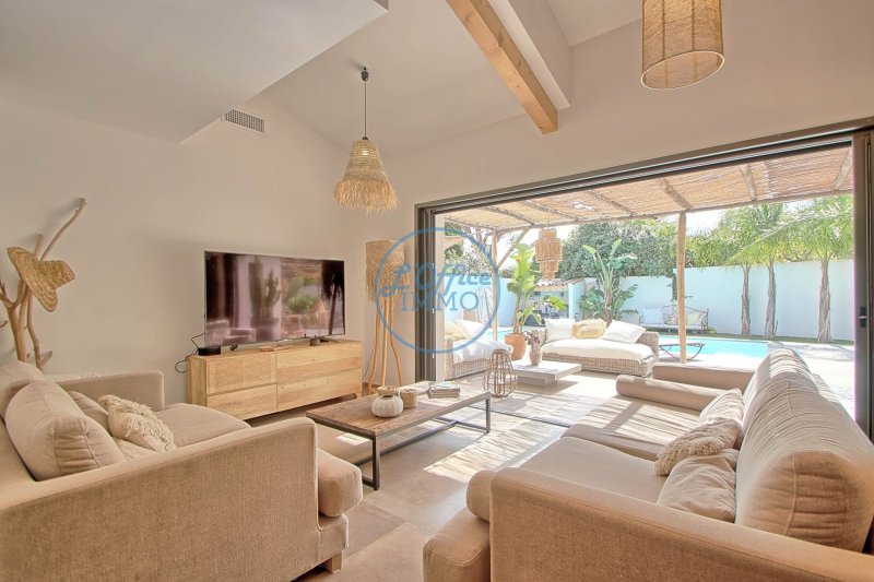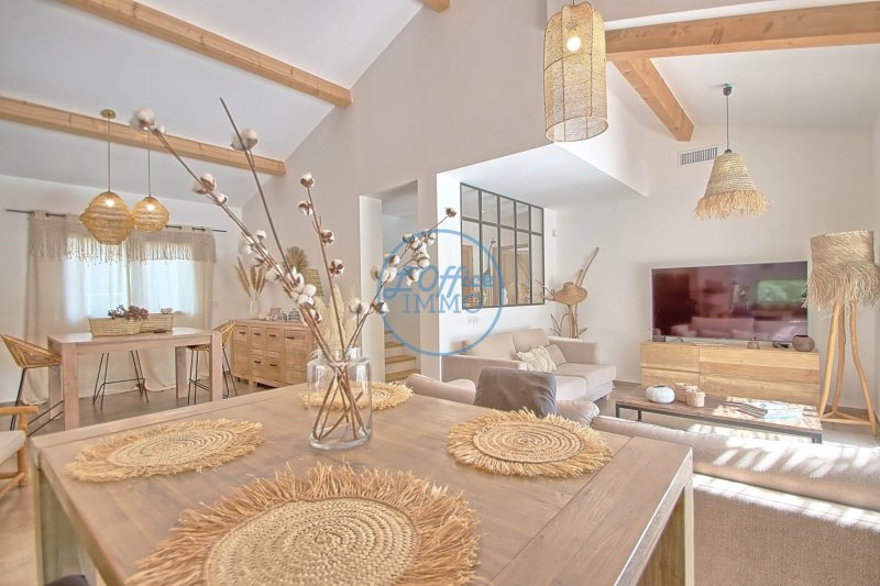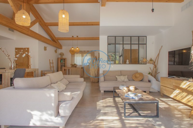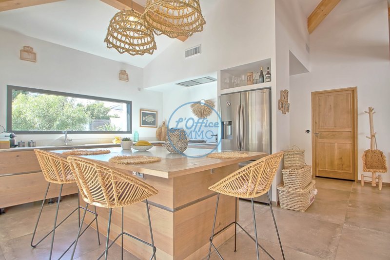Seulement chez l'Office Immo ! Venez découvrir cette magnifique villa contemporaine construite en 2021, offrant des prestations haut de gamme et un confort de vie exceptionnel. Édifiée sur un terrain paysager de 488 m², elle se situe à seulement 800 mètres du centre-ville du Pradet et des plages, dans un environnement calme et privilégié, sans aucun vis-à-vis. La pièce principale, baignée de lumière grâce à trois grandes baies vitrées en galandage, offre un volume généreux d'environ 60 m² comprenant un vaste séjour et une cuisine ouverte entièrement équipée. Le plafond cathédrale sublime cet espace de vie convivial, qui s'ouvre sur une superbe terrasse de 77 m² exposée plein sud donnant sur une piscine de 7 m par 3,50 m, créant un véritable lieu de détente. L'extérieur se complète d'un jardin végétalisé soigneusement aménagé ainsi que d'un terrain de pétanque. La maison propose une belle suite parentale de 18 m² comprenant un dressing de 5 m² et une salle de bain de 8 m² avec douche à l'italienne, et baignoire . À l'étage, vous trouverez deux chambres de 11 m² chacune avec placards intégrés, ainsi qu'une salle d'eau. Pour plus de confort au quotidien, la villa dispose également d'une buanderie et d'un garage. Elle bénéficie de matériaux de grande qualité tels que la climatisation gainable, des menuiseries aluminium et des finitions haut de gamme. Cette maison ne nécessite aucun entretien et offre des volumes spacieux, lumineux et parfaitement agencés. Elle séduira celles et ceux qui recherchent une villa moderne, élégante et confortable, à proximité immédiate du centre-ville et des plages, dans un cadre verdoyant et paisible. Pour plus d'informations n'hésitez à revenir vers nous Classe énergie A, Classe climat A Montant estimé des dépenses annuelles d'énergie pour un usage standard : entre 743.00 et 1005.00 sur les années 2021, 2022 et 2023 (abonnements compris). Les informations sur les risques auxquels ce bien est exposé sont disponibles sur le site Géorisques : georisques.gouv.fr. Ce bien vous est proposé par un agent commercial (Entreprise individuelle). Votre conseiller L'office Immo : Michael Sorabella Agent commercial (Entreprise individuelle)
