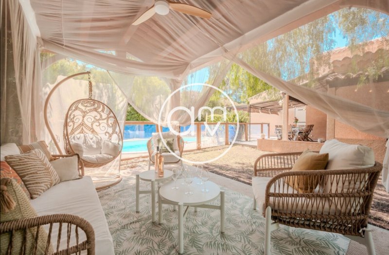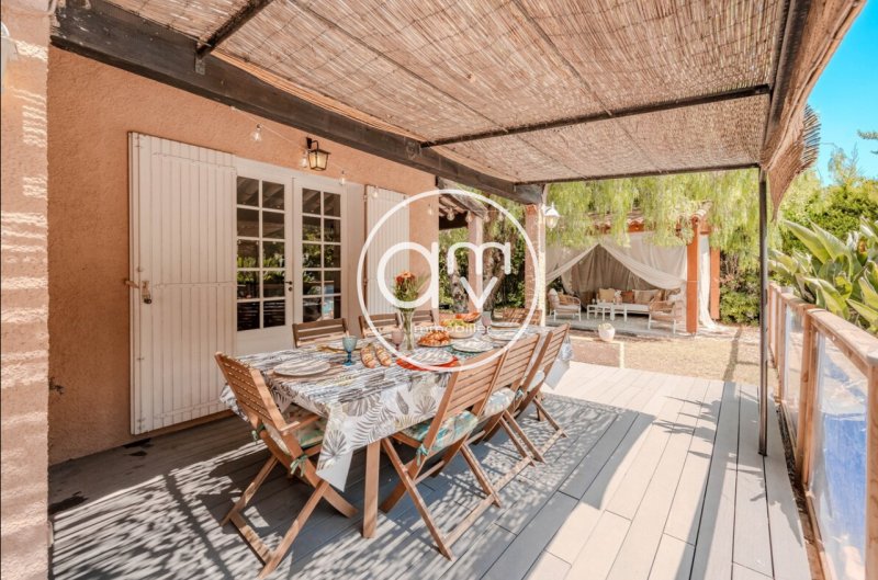 ? Votre nouvelle histoire commence ici. Nichée dans le très recherché lotissement sécurisé Les Mas de la Solitude, cette élégante villa au charme provençal vous invite à découvrir un art de vivre unique, entre lumière du Sud, douceur de vivre et intimité préservée. Construite sur une magnifique parcelle arborée de 1 281 m2, à l'abri des regards, elle dévoile 169 m2 habitables et des espaces extérieurs conçus pour savourer chaque saison. Dès l'entrée, l'atmosphère chaleureuse de la maison se ressent ,matériaux authentiques, volumes généreux et esprit du Sud créent une sensation immédiate de bien-être. Le rez-de-chaussée se compose d'un élégant hall d'accueil menant à une grande cuisine séparée, récemment rénovée, ainsi qu'à une vaste salle à manger agrémentée d'une cheminée, ouverte sur un salon intime et lumineux. Le salon s'oriente plein sud et offre un accès direct à la terrasse et à la piscine, prolongement naturel de l'espace de vie. Deux chambres de plain-pied ainsi qu'une grande salle de bain et une buanderie complètent ce niveau, permettant une vie totalement de plain-pied si souhaité. À l'étage, deux autres chambres spacieuses, une troisième plus intime pouvant servir de bureau, chambre d'enfant ou dressing, ainsi qu'une seconde salle d'eau avec douche, offrent à chacun indépendance et confort. À l'extérieur, la magie opère.. Jardin arboré, grande terrasse plein sud, superbe véranda d'été, piscine avec jacuzzi intégré et nage à contre-courant, espace de jeux pour les enfants, terrain de pétanque viennent enrichir cet espace pensé pour profiter, recevoir, partager et se ressourcer. Un garage attenant, prolongé d'un atelier accessible depuis la maison, complète l'ensemble. La maison est équipée d'une climatisation réversible récente et bénéficie également d'une fibre optique. Le domaine, fermé et sécurisé, offre à ses résidents un privilège rare : un accès privé aux plages, situées à seulement dix minutes à pied. Cette villa réunit tous les atouts des biens rares : une adresse prisée, une architecture pleine de charme, de grands volumes, des prestations pensées pour la famille et un environnement calme, privilégié et proche de tout.