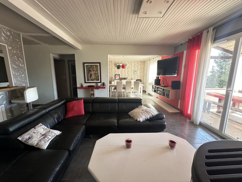 Le Val - Villa traditionnelle de type 4 sur 3500 m2 de terrain. La maison édifiée en 1965, rénovée se compose comme suit : Une entrée, un séjour, trois chambres, une salle d'eau et wc indépendant. Une terrasse sud. Un garage et terrain autour de 3500 m2 clos et arboré. Ses prestations : Isolation par l'extérieure, poêle à granules, chauffe-eau thermodynamique, isolation des combles, plain pied, fosse septique non conforme, eau de ville, taxes foncières 2025 de 1484,00 EUR. Mandat 2488 - Les Sélections de Marie - 04.98.15.40.52 -