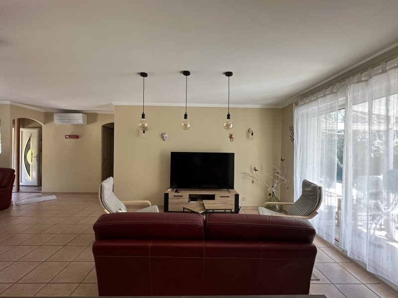 Le Val - Villa de plain de pied édifiée en 2000 se composant comme suit : Une entrée avec placards, un séjour composé d'un salon 2 salles à manger une cuisine équipée ouverte avec ilot neuve, 3 chambres, wc indépendants, une salle d'eau. Un Studio indépendant composé d'une chambre et une salle d'eau avec wc. Un garage attenant et communicant carrelé et isolé. Terrain clos plat arbiré et payqgé, des terrasses une piscine une véranda. Ses prestations: Piscine 7 x 3,5 - Véranda, Tout à L'égoût - eau de ville - DV PVC, Volets aluminium et roulant automatiques - Portail automatique - VMC neuve - Cuisine CASEO Neuve - Chauffe eau termodynamique 300l - Panneaux photoltaïques avec rendement de 2100,00EUR/2023 - Taxes Foncières 2023 de 1717,00 EUR. Mandat 2447 - Les Sélections de Marie - 04.98.15.40.52 - Carte professionnelle CPI no 8301 2018 000 026 215 délivrée par la CCI du Var le 29 Mars 2024 ; SANS DÉTENTION DE FONDS. Activité Transaction sur Immeubles et Fond de Commerce. Les informations sur les risques auxquels ce bien est exposé sont disponibles sur le site Géorisques : www.georisques.gouv.fr. Diagnostics de Performance Energétique établi le 21 Novembre 2023 - valable Jusqu'au 20 Novembre 2033. Consommation énergetique 90 - B , Emissions Gaz a éffet de serre : 2 - A. Estimation des couts annuels d'énergie du logement entre 610,00 EUR et 890,00 EUR par an. Prix moyens des énergies indexés au 1er Janvier 2021 ( abonnements compris ).