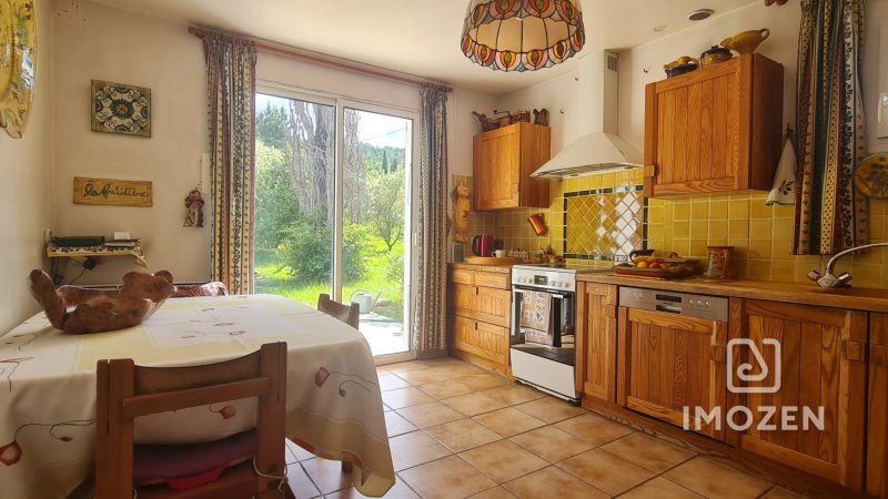 De nouveau à la vente !!! En Exclusivité avec l'agence IMOZEN!!! Située dans un environnement paisible aux coeurs de la Provence Verte, venez visiter cette belle maison plain pied de 155 m2 qui incarne à merveille l'esprit de la garrigue. Un agrandissement a été terminée en 1997. Entièrement décorée avec soin, elle offre un cadre de vie chaleureux, dans un esprit de tradition et de confort. À l'intérieur : Une décoration intérieure raffinée, aux accents provençaux Deux modes de chauffage ( poste climatisation dans la pièce de vie et panneaux rayonnants) et une cheminée en pierre traditionnelle Des volumes agréables et lumineux Séjour cathédrale Elle dispose de 4 chambres dont une exploitée actuellement en bureau ( 9.8, 9.6, 13.45 et 16m2). À l'extérieur : Un terrain arboré de 3 500 m2 avec de nombreux oliviers. Une véranda avec barbecue intégré, idéale pour les repas d'été. Deux terrasses carrelées propices à la détente, coté Sud et Coté Nord. Un puit, un abri bois, et un garage avec mezzanine, parfait pour le rangement ou un espace atelier À prévoir : Fosse septique à remettre aux normes Les + : Charme provençal et environnement ensoleillé. Grand terrain plat et arboré Garage avec mezzanine fonctionnelle Calme et nature Un véritable havre de paix pour les amoureux du soleil et des ambiances méridionales. À visiter sans tarder ! Pour plus d'informations, contactez Mme Nathalie Erguy de l'agence Imozen, joignable au 0677606399 ou par mail erguy@imozen.fr. 'Conformément à l'article L 561.5 du code monétaire et financier, une pièce d'identité vous sera demandé pour l'organisation d'une visite.' Les informations sur les risques auxquels ce bien est exposé sont disponibles sur le site Géorisques : www.georisque.gouv.fr