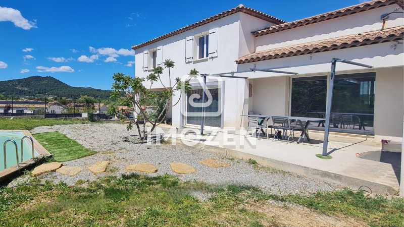 À Vendre Villa Familiale Moderne avec Piscine Le Val Lien vue drone disponible : n'hésitez pas à en faire la demande !!! Située dans un lotissement proche du village au coeur de la Provence verte, découvrez cette magnifique villa familiale de 150 m2 (achèvement des travaux en 2017) offrant un cadre de vie confortable et moderne. Avec son architecture originale et son dénivelé de toiture atypique, elle séduira les amateurs de design et de praticité. Points forts de la villa 5 chambres spacieuses: à l'étage : 3 belles chambres lumineuses et au rez-de-chaussée : 2 chambres, dont une suite parentale avec salle d'eau privative Salle de bain fonctionnelle à l'étage avec WC intégré, pensée pour optimiser l'espace Grande pièce de vie de 60m2 conviviale avec cuisine ouverte, baignée de lumière naturelle Une buanderie Extérieur et terrain Terrain de 942 m2, laissant libre cours à vos projets d'aménagement paysager Terrasse existante à carreler pour profiter pleinement des beaux jours Confort et équipements Chauffage gainable performant (RT 2012) pour un confort optimal en toute saison Fenêtres oscillo-battantes assurant une excellente isolation thermique et phonique Système d'alarme installé Raccordement au tout-à-l'égout (TAE) Construction traditionnelle Lotissement en ASL Charges annuelles : 300 EUR Quartier calme, familial et très prisé, proche de toutes commodités Cette maison familiale aux espaces optimisés est idéale pour accueillir une grande famille dans un cadre agréable et dynamique. L'extérieur à aménager vous permet de personnaliser le jardin et la terrasse selon vos envies. Une opportunité rare ! N'attendez plus pour découvrir cette villa unique. Contactez nous pour organiser une visite ! Pour plus d'informations, contactez Mme Nathalie Erguy de l'agence Imozen. 'Conformément à l'article L 561.5 du code monétaire et financier, une pièce d'identité vous sera demandé pour l'organisation d'une visite.' Les informations sur les risques auxquels ce bien est exposé sont disponibles sur le site Géorisques : www.georisque.gouv.fr