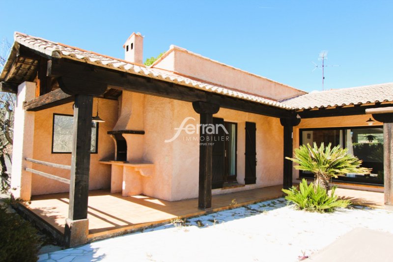 L'agence Ferran vous propose cette maison de plain-pied de construction traditionnelle de 1979 d'une surface habitable d'environ 115m². Elle est composée d'une entrée fonctionnelle avec placard, d'un espace séjour de plus de 50m² comprenant une cuisine ouverte entièrement équipée, une buanderie attenante, une salle à manger et un salon avec cheminée décorative. Côté nuit, trois chambres de plus de 13m² chacune, dont deux avec placard de rangement intégré, une salle de douches avec double vasque et un toilette indépendant avec lave-mains. Un espace bureau de 6m² vient compléter la maison.