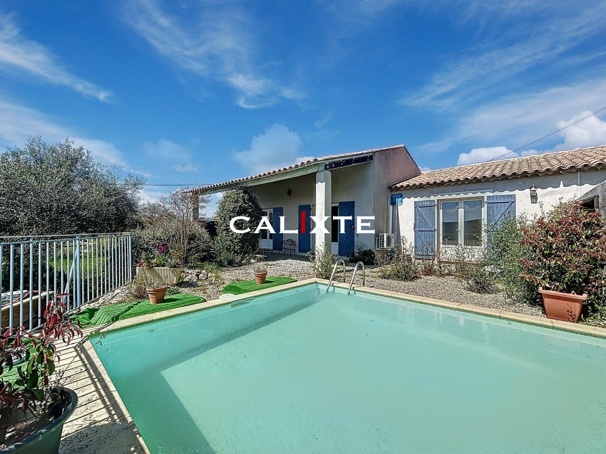 La terrasse plein sud s’ouvre sur une piscine chauffée au sel (10 x 5 m. Le tout est entouré d’une rocaille paysagée.