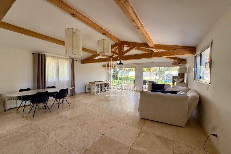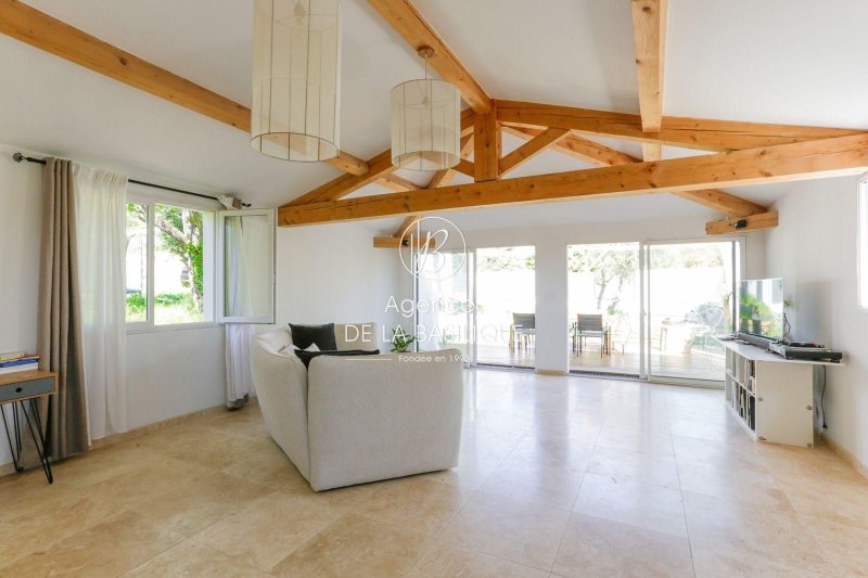 En rez-de-chaussée, vous trouverez un espace aménagé d'environ 45 m² (type atelier), une cuisine, un salon d'été ainsi que des espaces annexes.