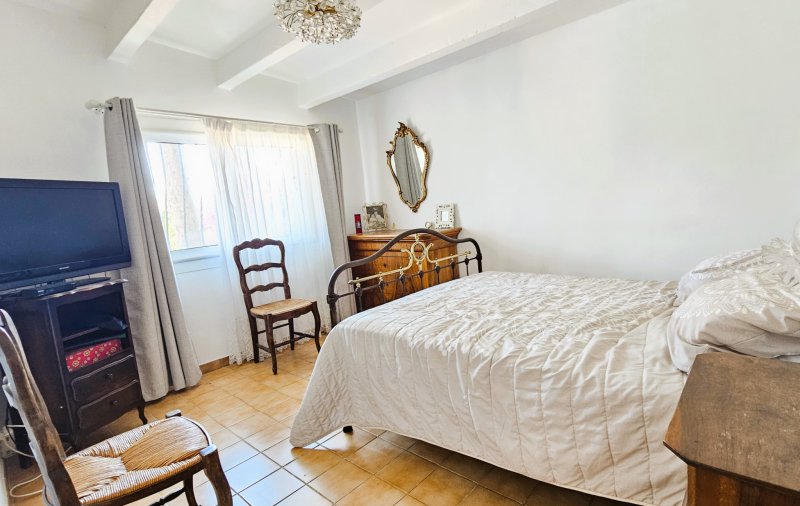 Nichée dans un écrin de verdure, cette maison de plain-pied, d'une surface habitable d'environ 115 m2, est édifiée sur un beau terrain plat et arboré. Vous serez séduits par son atmosphère chaleureuse, son beau séjour lumineux ouvrant sur une vaste terrasse ensoleillée, ses 4 chambres, sa cuisine séparée et fonctionnelle. À l'extérieur, la grande terrasse en terre cuite accueille une superbe piscine, idéale pour profiter pleinement de vos journées ensoleillées, en toute intimité. L'ensemble est parfaitement entretenu, dans un environnement calme et résidentiel, sans vis-à-vis, avec une belle végétation méditerranéenne. Possibilités de stationnements sur la parcelle. Bien idéal en résidence principale comme secondaire. Maison pleine de charme, offrant un beau potentiel de personnalisation.