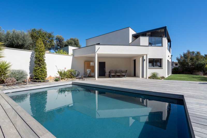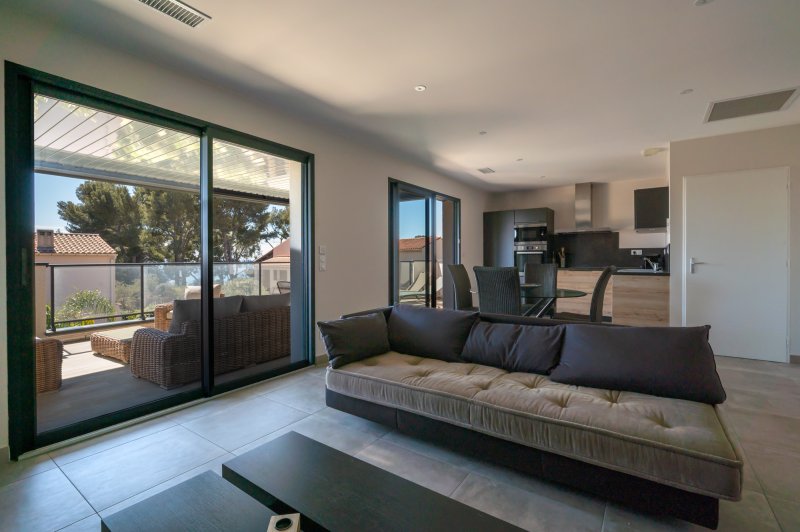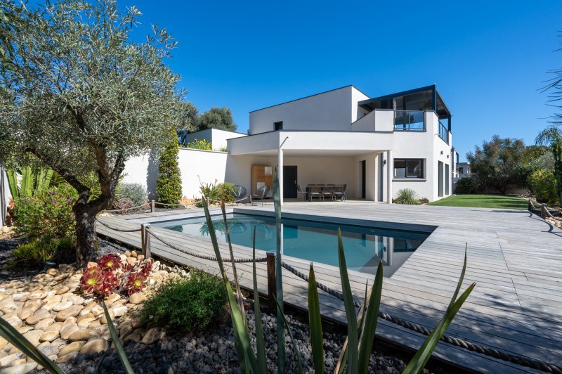 Idéalement située dans un quartier résidentiel prisé de Bandol, cette magnifique villa récente (2022) de 178 m2 offre un cadre de vie exceptionnel, à seulement 50 mètres de la plus belle crique de Bandol. Son terrain de 700 m2 accueille une piscine ainsi que de beaux espaces extérieurs, dont deux terrasses, l'une couverte, pour profiter pleinement du climat méditerranéen. Cette propriété offre une grande flexibilité d'aménagement : actuellement divisée en deux appartements indépendants, elle peut être facilement transformée en une spacieuse maison familiale. L'ensemble comprend 6 chambres, 5 salles de bains et deux vastes pièces de vie, offrant confort et fonctionnalité. Idéale pour une grande famille, deux foyers ou une résidence secondaire sans entretien, elle constitue également une excellente opportunité d'investissement locatif. Le rez-de-chaussée est actuellement loué en saisonnier, générant un revenu annuel de 50 000 EUR. Prestations haut de gamme, sous garantie décennale, avec garage, parkings intérieurs et une vue mer depuis l'étage. Un bien rare au fort potentiel, à visiter sans tarder !