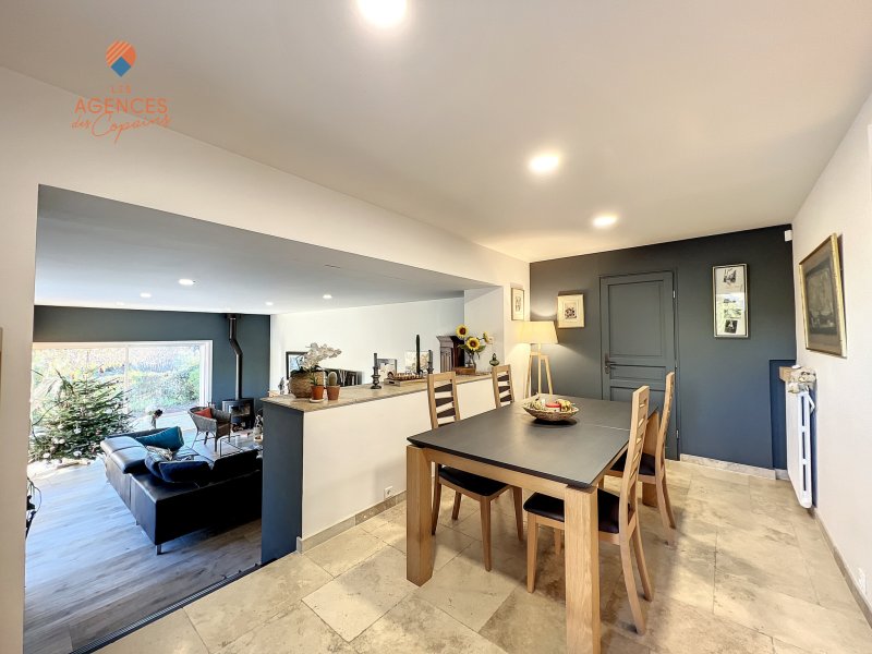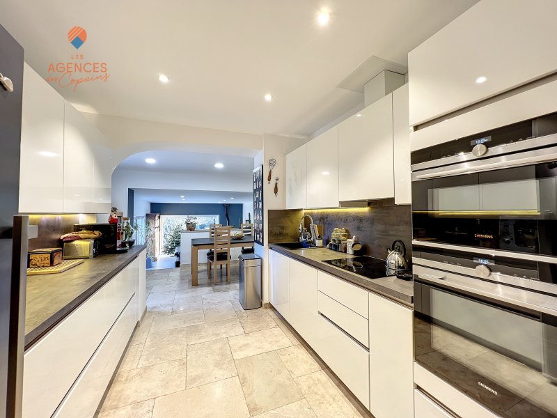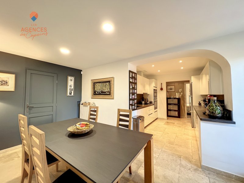 BANDOL - PIERREPLANE, SUPERBE VILLA T3 + T6 AVEC PISCINE Sur une parcelle de 1120 m2, se composant de deux appartements entièrement indépendants avec accès et jardins privatifs, pouvant être réunis en 1 seul logement. A l'étage: Un vaste 3 pièces de 77 m2 avec petite vue mer, salon séjour ouvrant sur grande terasse sans vis à vis, cuisine équipée, 2 chambres, garage + 3 stationnements, climatisation réversible. En rez de jardin: un magnifique 6 pièces ( 4 chambres) de 150 m2, cuisine équipée, salon salle-à-manger 48 m2 ouvrant sur terrasse, jardin arboré et piscine de 9x5 avec rideau électrique, buanderie 25 m2, boulodrome, 4 stationnements prestations de qualité, entièrement rénové. Commerces à proximité, accès plages à pied, Port de BANDOL à 2 kms. A VISITER ABSOLUMENT ! Bien proposé par Thierry ZAGORI no RSAC 950852582 (TOULON).