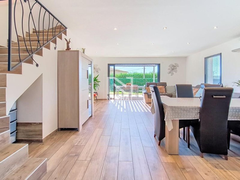 Exposée plein sud, cette maison individuelle récente, climatisée et sans aucun travaux à prévoir, offre 87,73 m² (loi Carrez), soit près de 90 m² utiles, avec un agencement fonctionnel et de beaux volumes sans perte d'espace.
