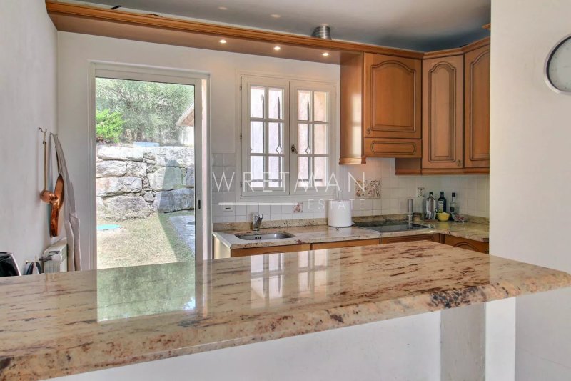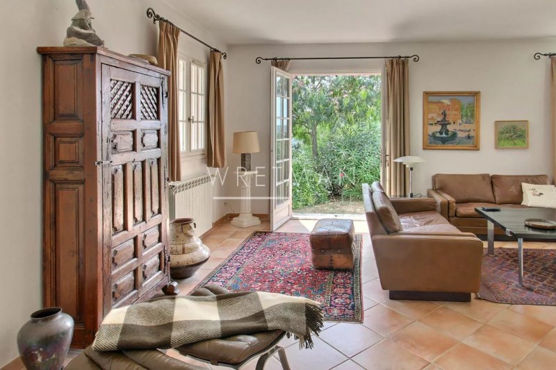 La maison propose : une entrée avec dressing, un salon avec cheminée et accès à la terrasse et au jardin. Cuisine ouverte équipée, chambre principale avec salle de bain et toilettes, chambre d'amis, salle d'eau avec toilettes, salle à manger. Buanderie.