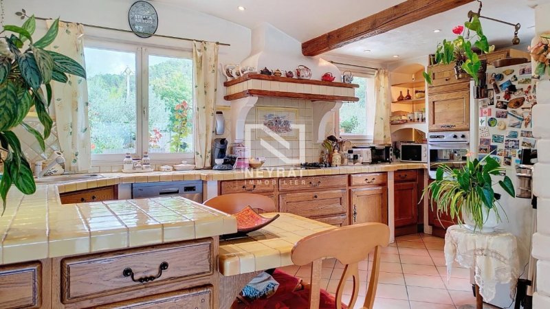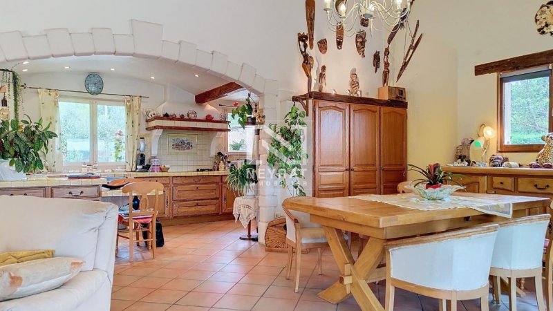 Dans un quartier recherché de MONTAUROUX, découvrez cette villa familiale entièrement de plain pied, qui offre un cadre de vie idéal et au calme. Très lumineuse, elle possède une entrée, un spacieux salon -séjour avec belle hauteur sous plafond et poutres apparentes, cheminée, cuisine ouverte équipée. Vous découvrirez quatre belles chambres donnant sur le jardin, buanderie, salle de bains et salle d'eau avec W.C, un W.C indépendant et coin mezzanine pour rangement. Très beaux volumes, beaucoup de cachet, grandes ouvertures sur l'extérieur. Orientation sud-est. A l'extérieur, grande piscine avec son espace salon d'extérieur, cuisine d'été, barbecue. Garage de 47m² environ avec atelier, rangements et car park pour deux véhicules. Terrain arboré et clôturé de 2500m² qui contient un puits qui alimente en eau le jardin et le potager, deux grands chalets en bois avec électricité, plusieurs places de stationnement et un coin pétanque sous tonnelle arborée de vignes. Bien rare, proche lac, du collège et des écoles, des commerces, à 9 mn de l'autoroute, à venir découvrir rapidement. Les informations sur les risques auxquels ce bien est exposé sont disponibles sur le site Géorisques : www.georisques.gouv.fr